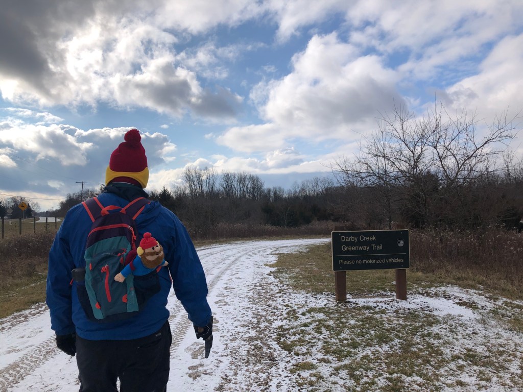 This was no typical Metro Parks Winter Hike. We’d get out “Ticket to Travel” stamped, making our way toward earning a hiking stick medallion, but there would be no bonfire, no hot chocolate, no long lines for chicken and noodles served up by park volunteers. We hadn’t met a group of friends to hike with (see: ). And there were no “designated” routes recommended for winter hiking. We were on our own!
