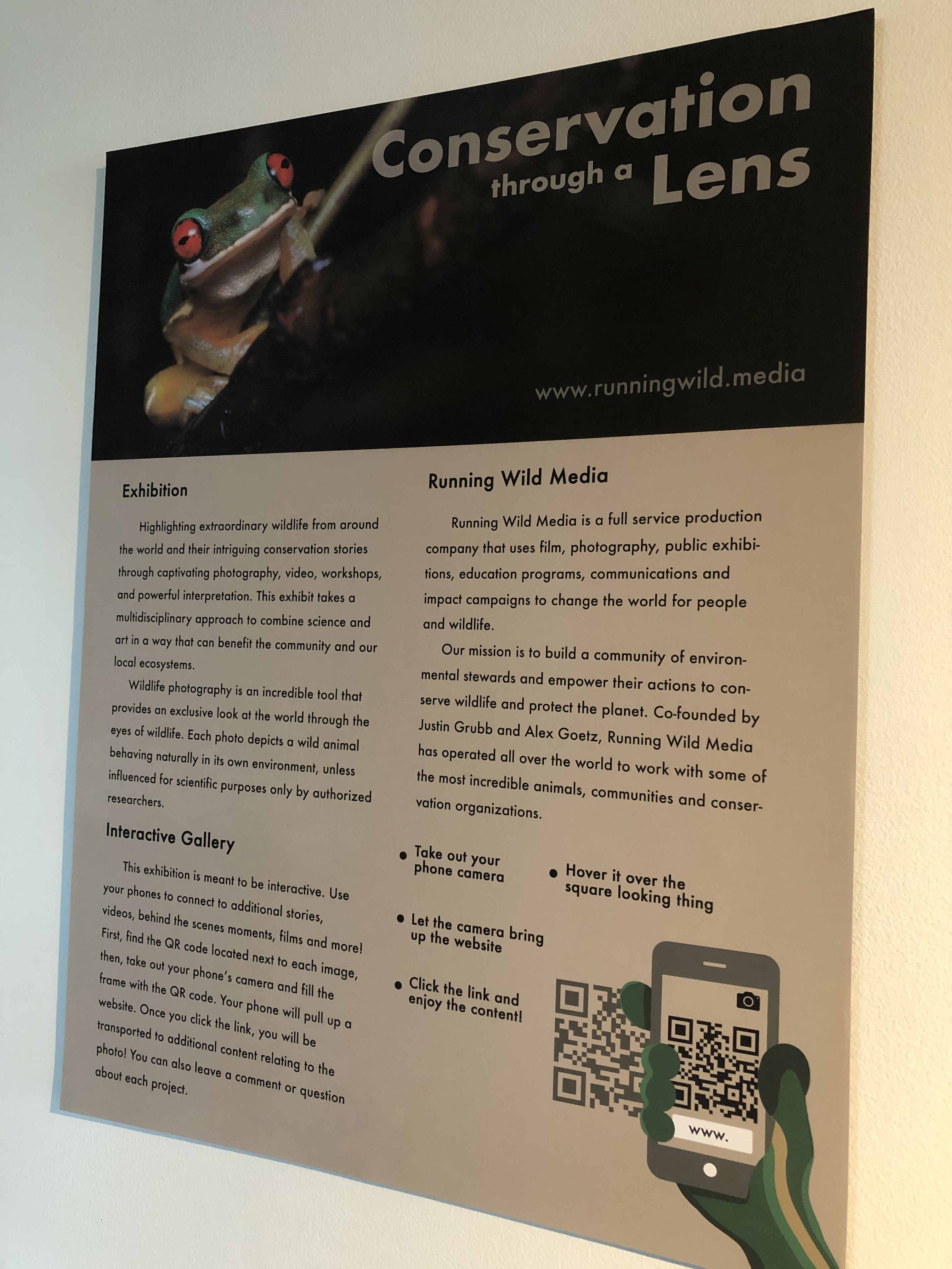 In full color, printed on a reflective metallic surface, were beautiful wildlife photography prints. A sign in the breezeway let me know that the exhibit had been hung just two weeks earlier, and would entertain visitors through June. What a colorful, artistic, inspiring way to welcome visitors back!