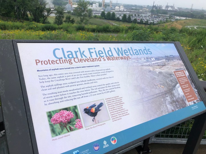 “The resulting man-made meadowland and wetland areas control the quantity and velocity of storm water before it reaches the river below. The soil and plant life filter storm water as it runs through the site, removing harmful pollutants.” (Clark Field Wetlands: Protecting Cleveland’s Waterways)