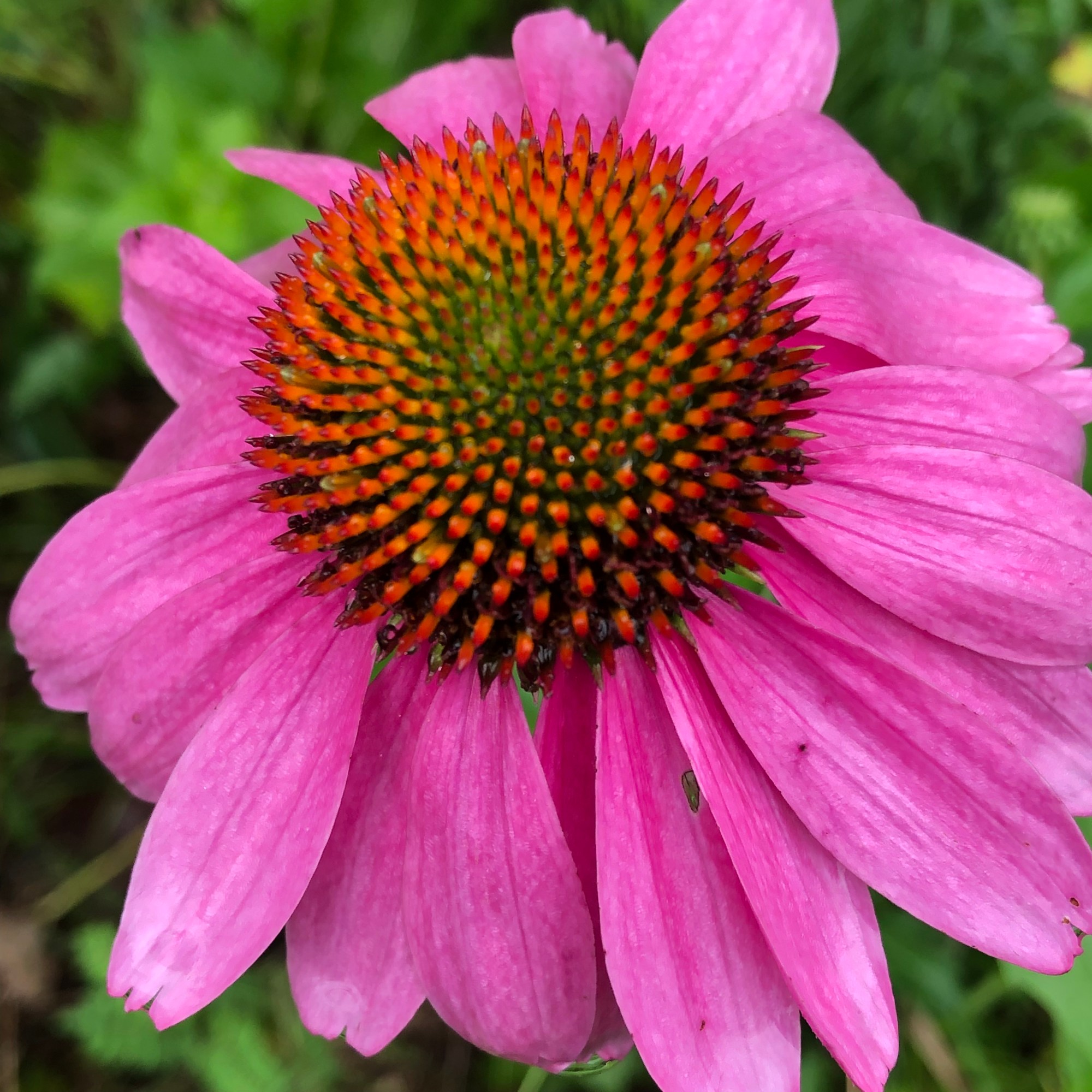 A bright yellow patch of Orange Coneflowers might catch your eye. If you slow your pace, and start taking a closer look at this meadow on a rainy day in July, the vibrant palette of flowers seems endless. Standing quietly for a moment, looking into the grasses along your path, you’ll be struck by the diversity of color you’ll see. Plants abound, and are joined by insects, including pollinating bees and butterflies.