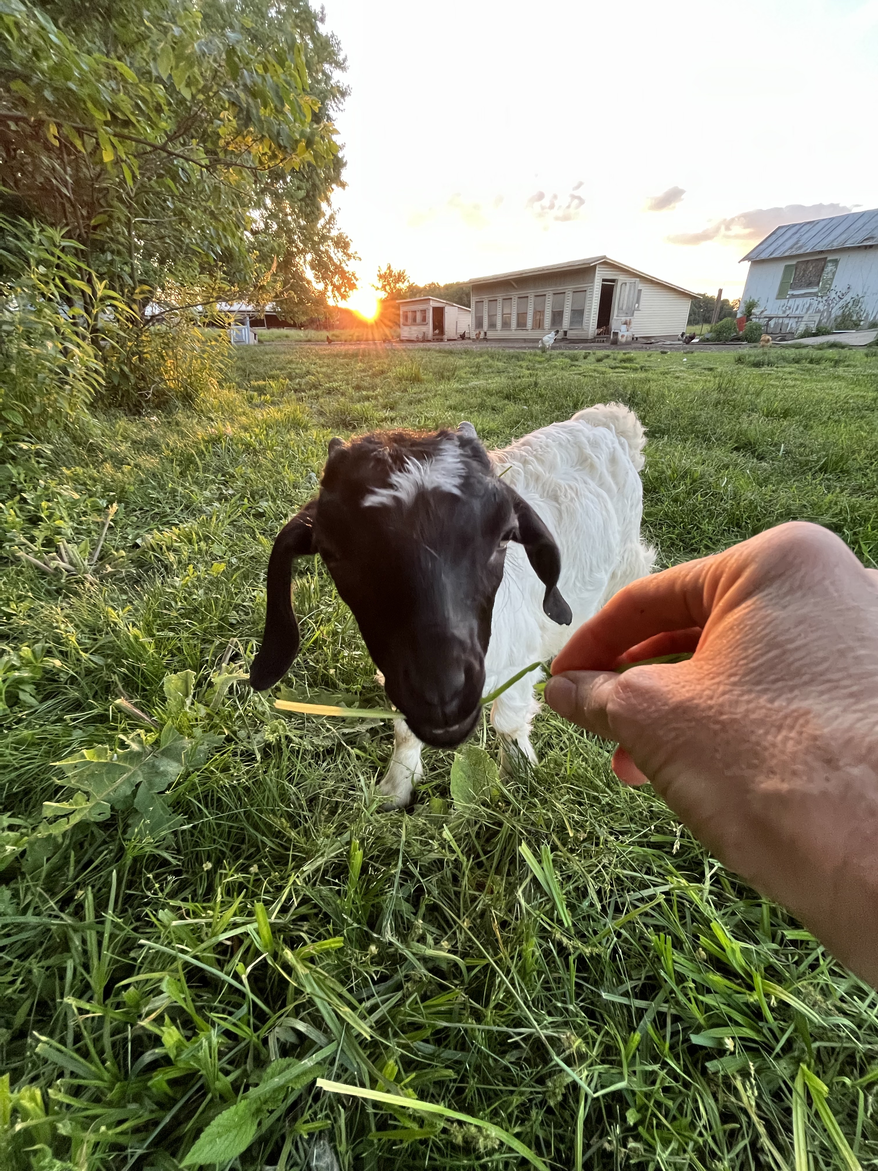 Harrison Farm is flush with goats, sheep, cats, and especially chickens. There are lots and lots of chickens, including more roosters than I was able to count, competing for attention with their piercing (and frequent) cock-a-doodle-dos. I’m unsure if the sunlight or chickens woke me up, but it was early enough to see the last bit of sunrise, which was beautiful and worth the intrusion into my sleep.