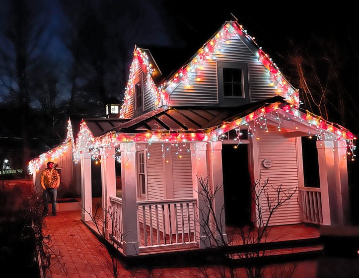 “Oh, look – I can get the stroller inside!” one young mom shouted to her friend, as they approached Granny’s House, in the Country Garden. I stepped aside, clearing the doorway for her, as she maneuvered the stroller up the brick path, then onto the porch. Carrying her newborn, her smile widened, as she gazed up at the lights that adorned the roofline. Her eyes sparkled and her white fur-lined parka was bathed with the colors of Christmas candy.
