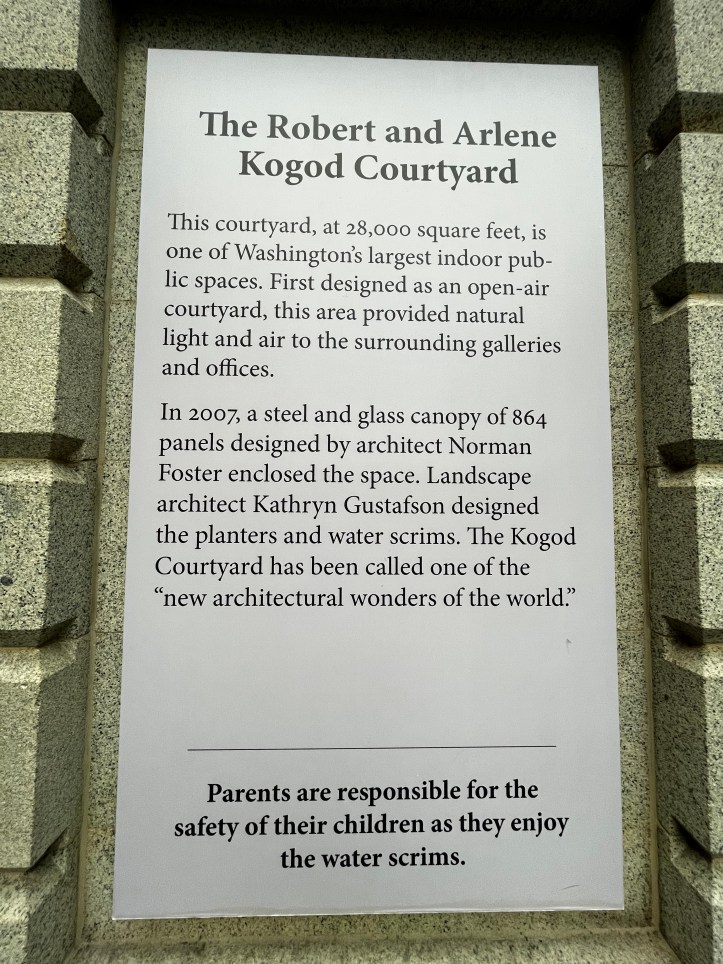 But then I sit and reflect, long enough that my fellow travelers have wandered away and into the museum giftshop. The light is so beautiful, the sun beginning to set on the DC landscape of memorials, monuments, and Smithsonian museums . I take another moment or two, to absorb that same light, pouring into the courtyard. Moment-by-moment the light changes – the scene changes – the mood changes. The moment is captured by each of us, in our memories or on our smartphones.