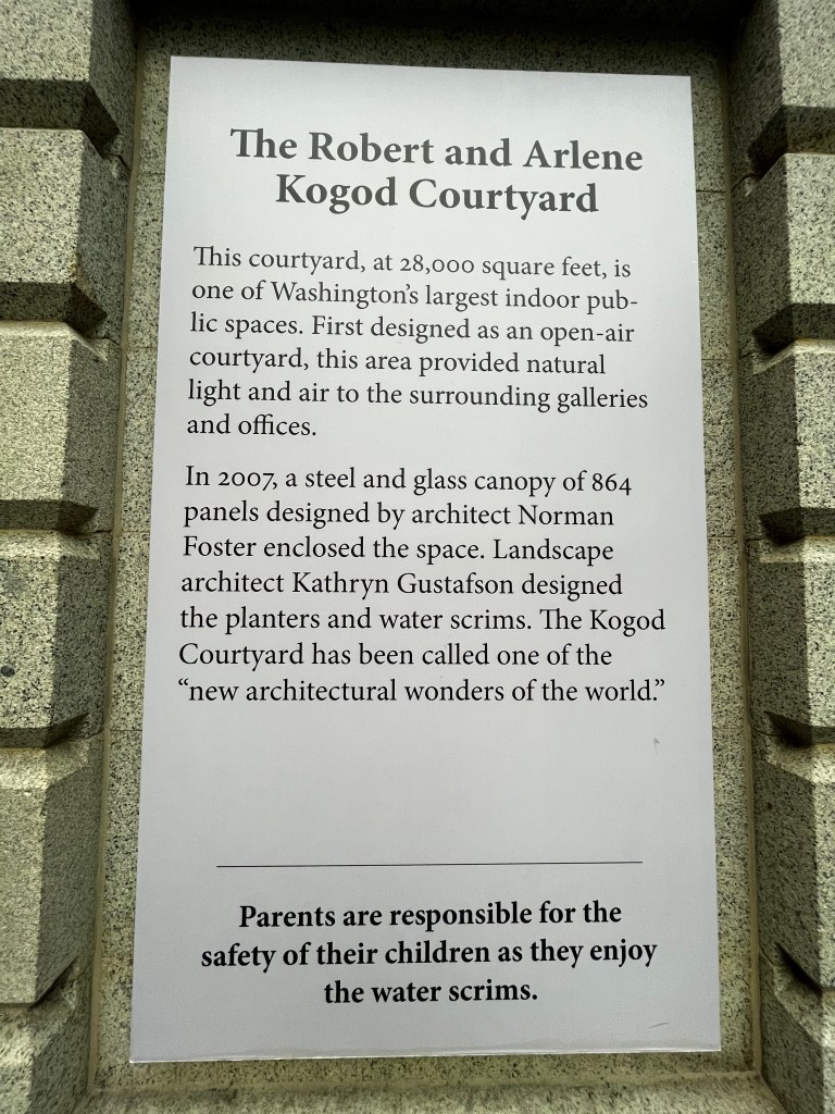 Are you lost, and a bit overwhelmed, by the Smithsonian American Art Museum and the National Portrait Gallery? The caliber and quantity of the artwork on display lead to visual and mental overstimulation. For a reprieve from the dimly lit art museum, take a step into the natural daylight of the spaciously illuminated Kogod Courtyard.