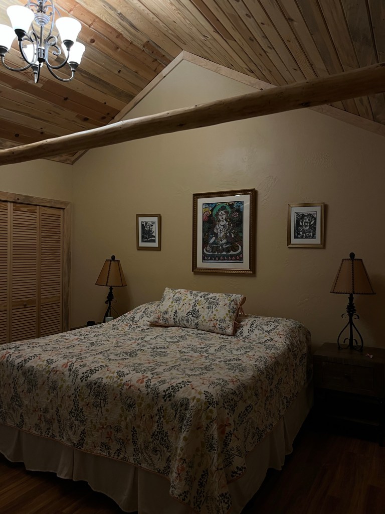 There are hammocks and kayaks by the lake for guests to use, a beautiful shrine, temples, an art cabin, a sunroom with stocked bookshelves… everything one might need to slow their mind and connect with their heart.