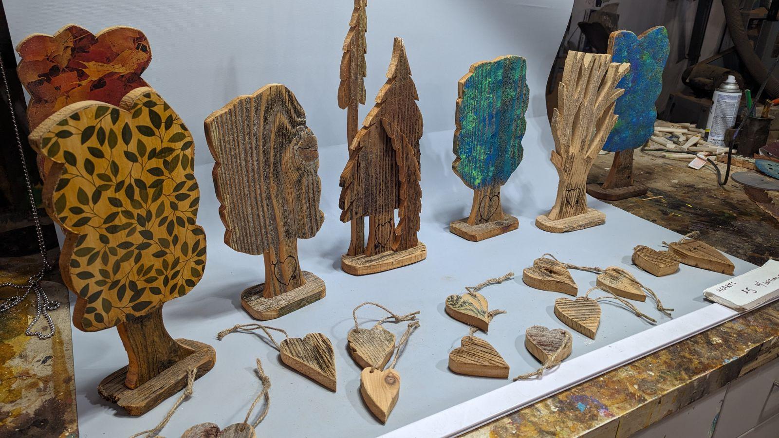 Every day that I reach for my keys, am searching my purse for a misplaced phone, or make my way to the basement to do the laundry I’m greeted, during these mundane, utilitarian tasks, by a forest of trees that Jon carved from reclaimed wood. The emphasis on environmental conservation by reusing (or upcycling) these materials makes my tree-hugging heart sing. Let me surround myself with more of that!