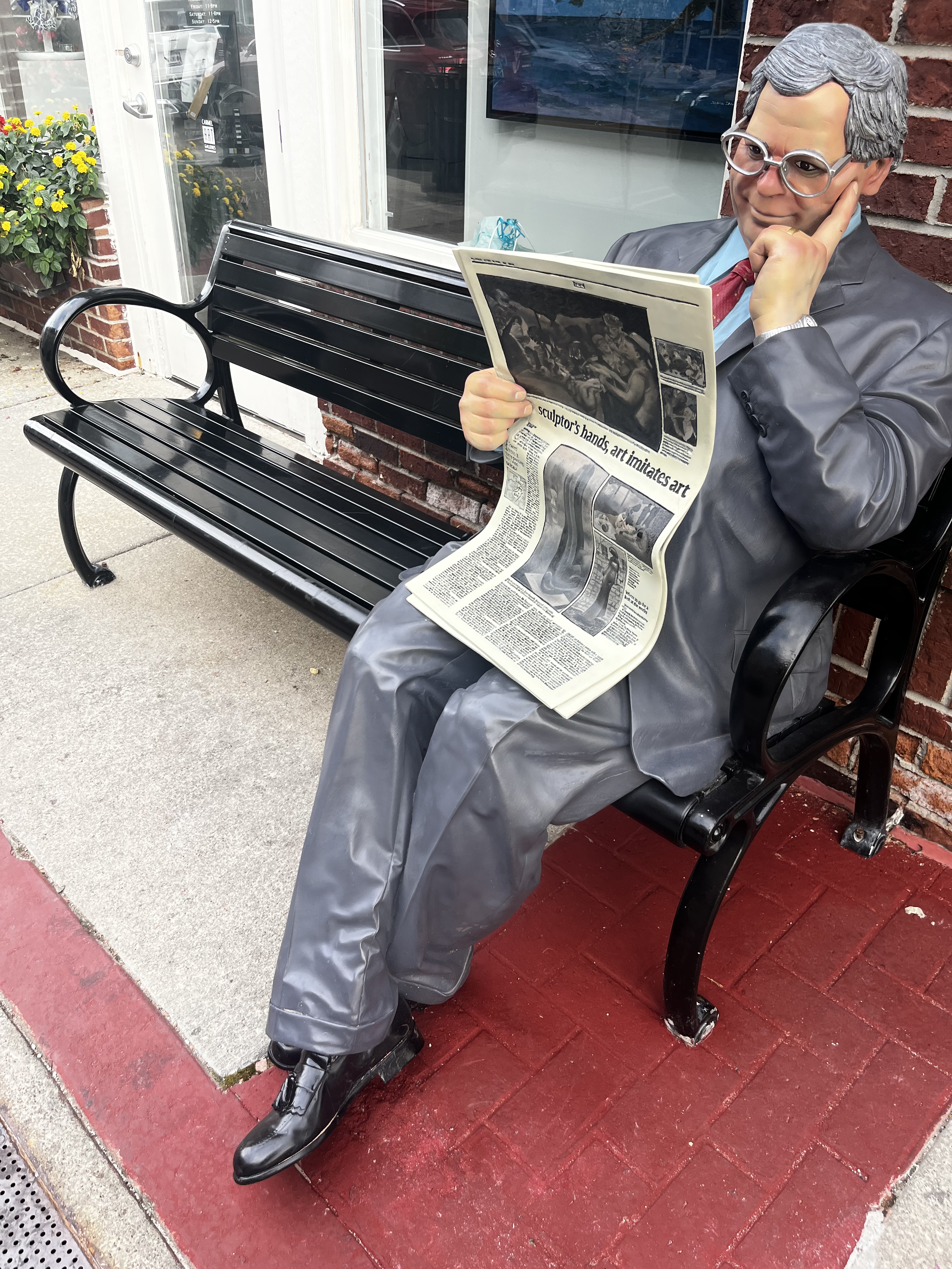 “J. Seward Johnson Jr., born in 1930, is the grandson of the founder of Johnson & Johnson Co. After a career in painting, Johnson turned to sculpting in 1968. Thirty-eight years later, Johnson has designed and created more than 250 life-size bronze sculptures in countries throughout North America, Europe, Asia and Australia.” (Carmel’s Arts and Design District website)