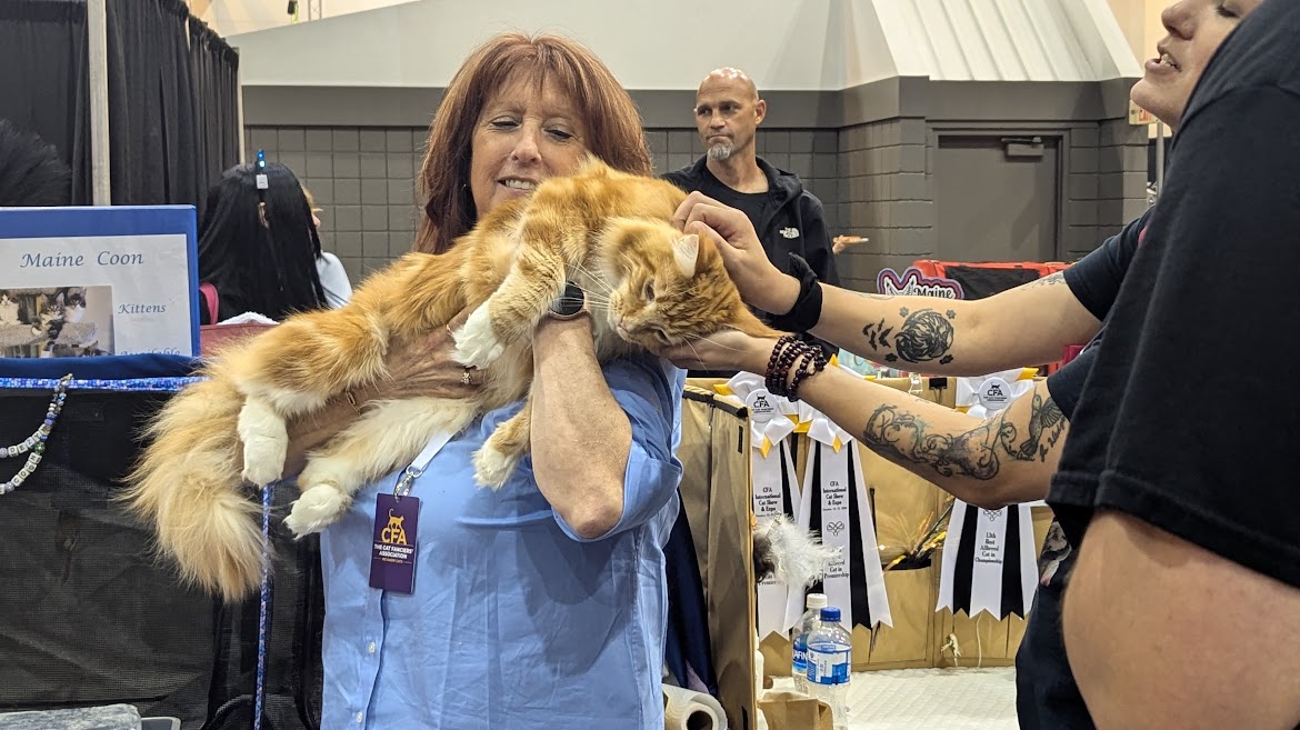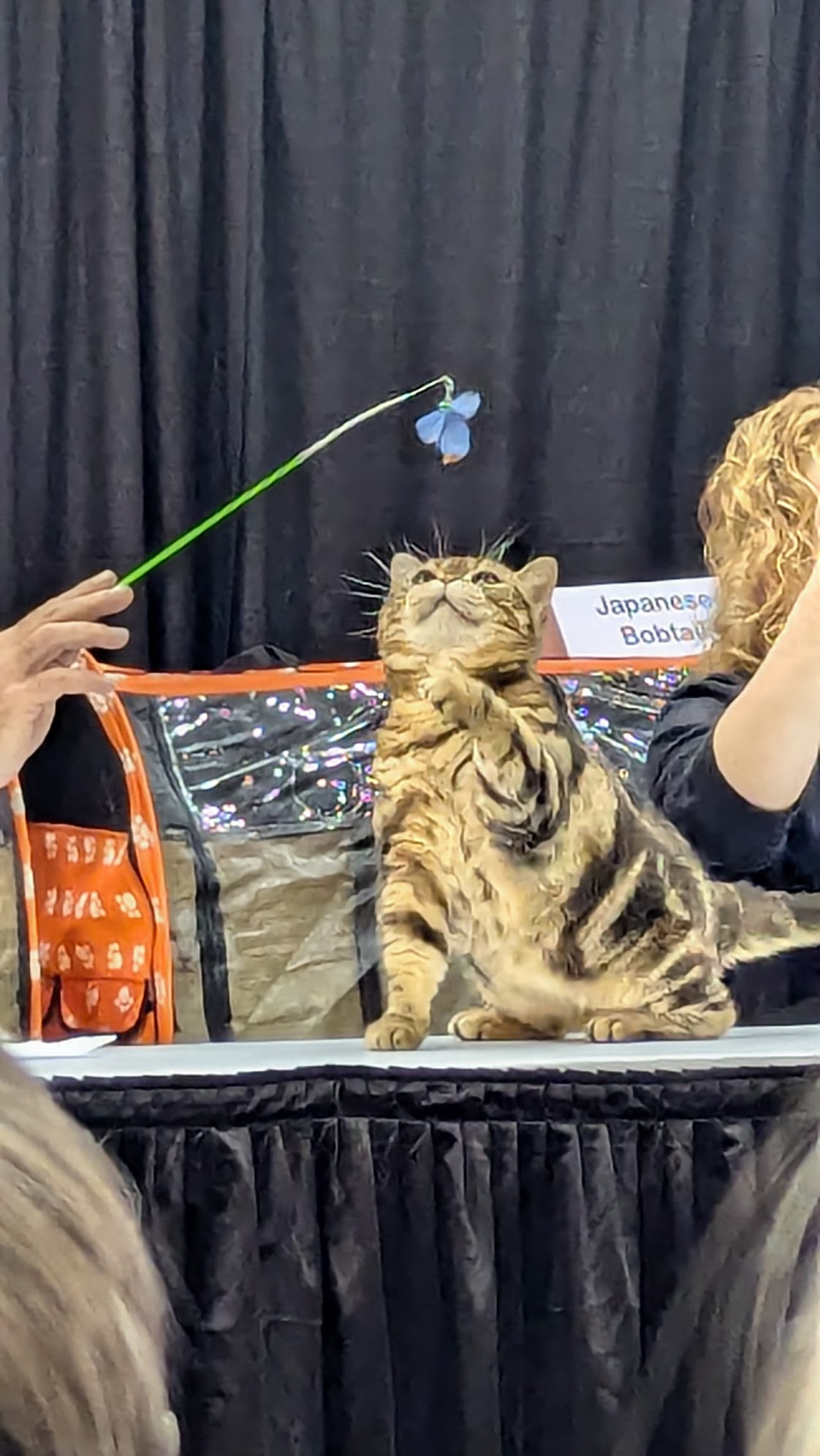 What about the cats? There were pure bread cats competing for ‘Best in Show,” including Lykoi cats who could be mistaken for Michael J Fox’s Teen Wolf or Michael Jackson from the Thriller era. Highly trainable, sociable, and intelligent Maine Coons, known for being Ron Perlman lookalikes, were some of the largest cats to stand on the platform, for judging.