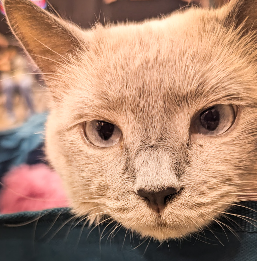 I have special pets too, the three of them – ButterCup, ButterBean, and Jeff. As I write this I’m surrounded by an explosion of cats, cat hair, cute cat toe beans, and pink noses. It was hard to leave the cat show without adding a kitten or two to the family, as a playmate for Jeff, who is always trying to get his sisters to play with him. But I know my limit. I can admire the cuties at the cat show and keep watching all the cat videos.