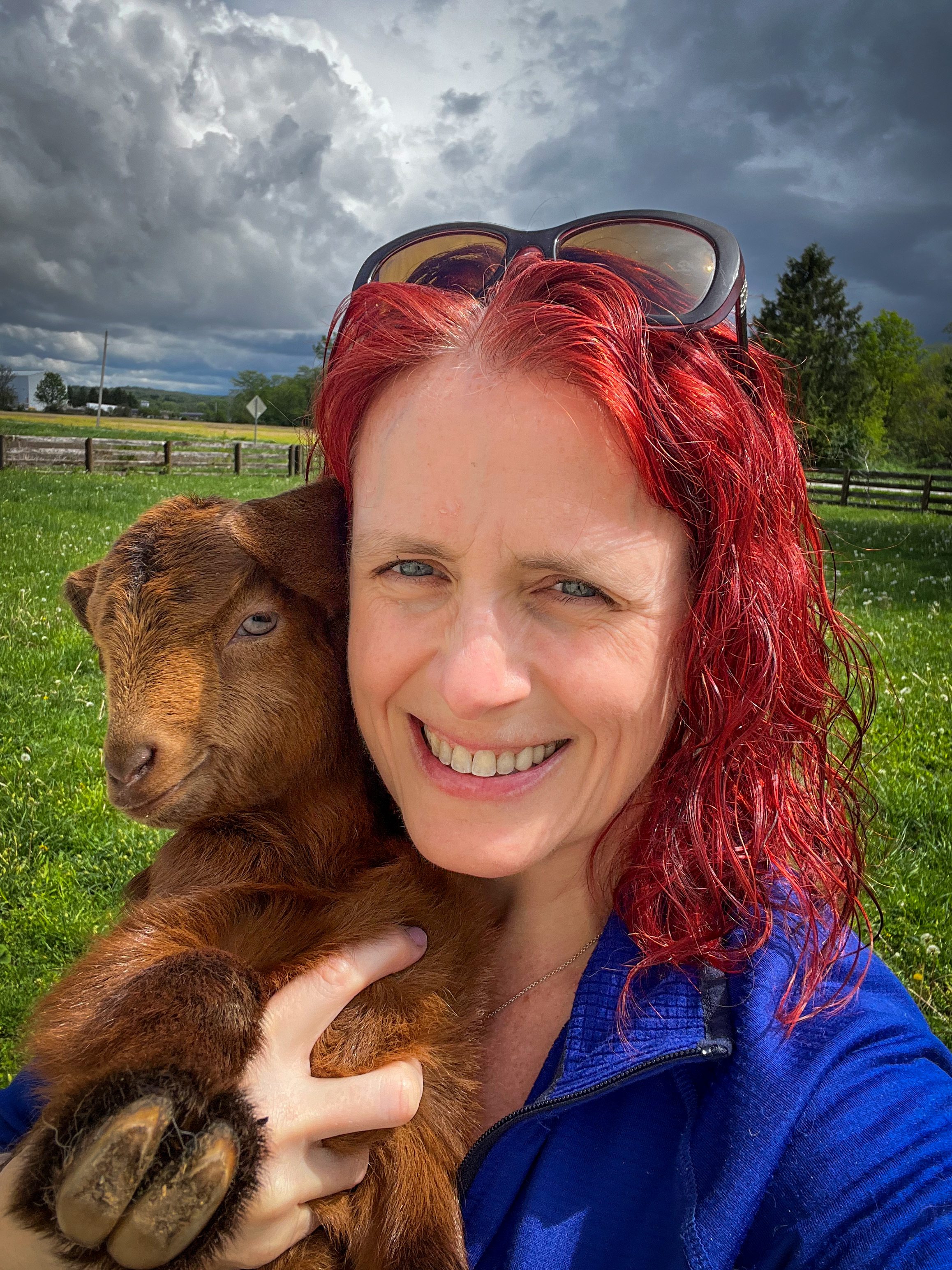 About that little brown goat I’m snuggling with in the photo above. . . well, that’s Esperanza, Instagram famous! She had the cutest ripple of fur doing a zigzag along the full length of her back. It gave her character and charm!