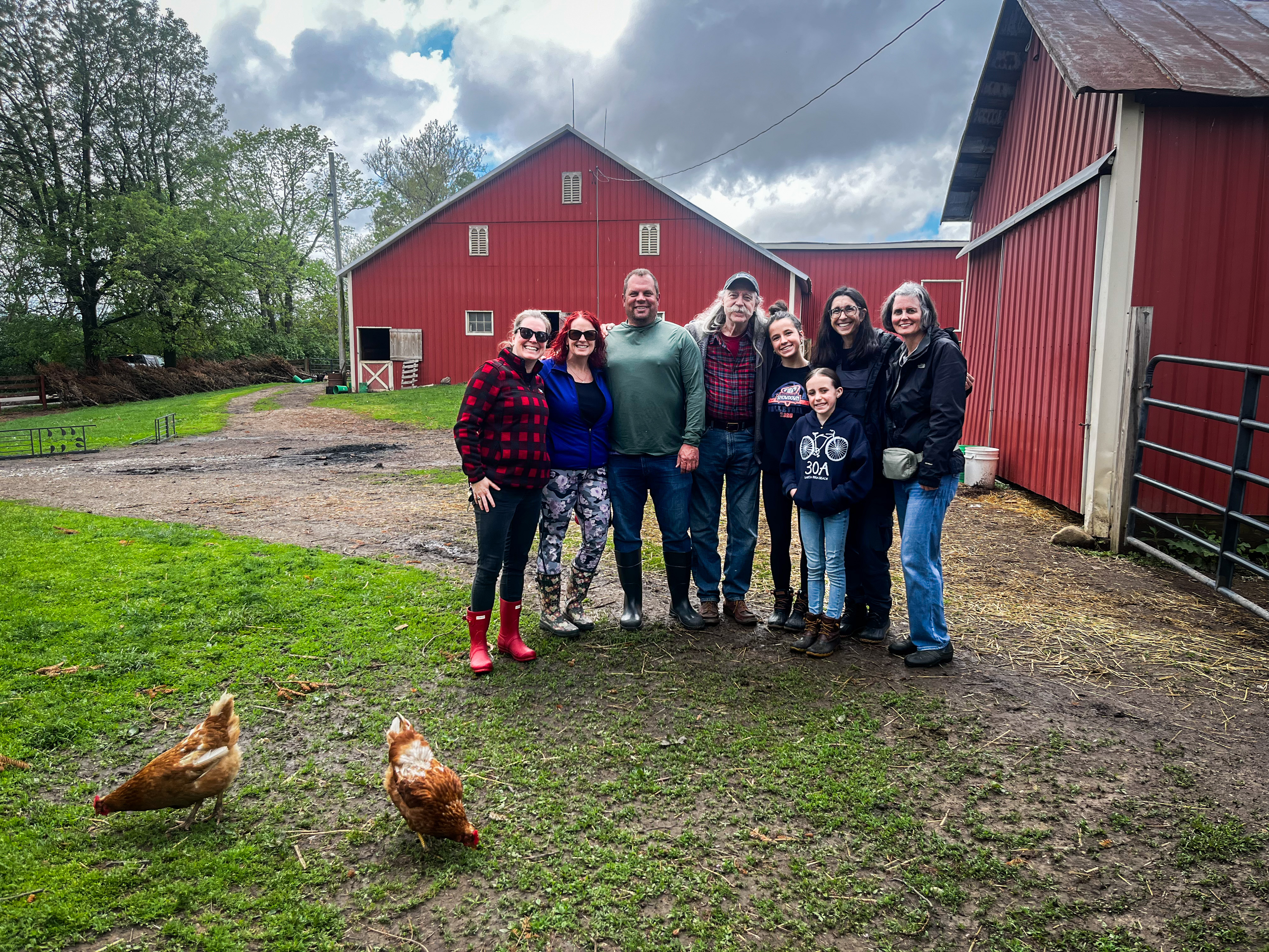 Early May in Ohio is prone to pop-up rainstorms, and the resulting mud, so we brought along our rain boots (our wellies). Mine are decorated with pink and yellow flowers and chickens, so it was very appropriate for this muddy, rainy day. About 30 minutes from our Clintonville home, getting to the Groveport farm makes for a nice Sunday afternoon drive. As we got closer the rain let up and we were hopeful for a beautiful, sunny day on the farm.