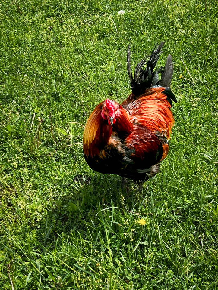 There are quite a lot of roosters on the farm – we learned that many are surrendered by city-dwellers and suburbanites who decide to get backyard chickens to lay eggs – only to discover that there is a rooster in the bunch, which the city restricts. No cocks allowed! Imagine how loud it would be, if they were permitted. The farm was loud enough, like a punk band with little formal training or coordination.