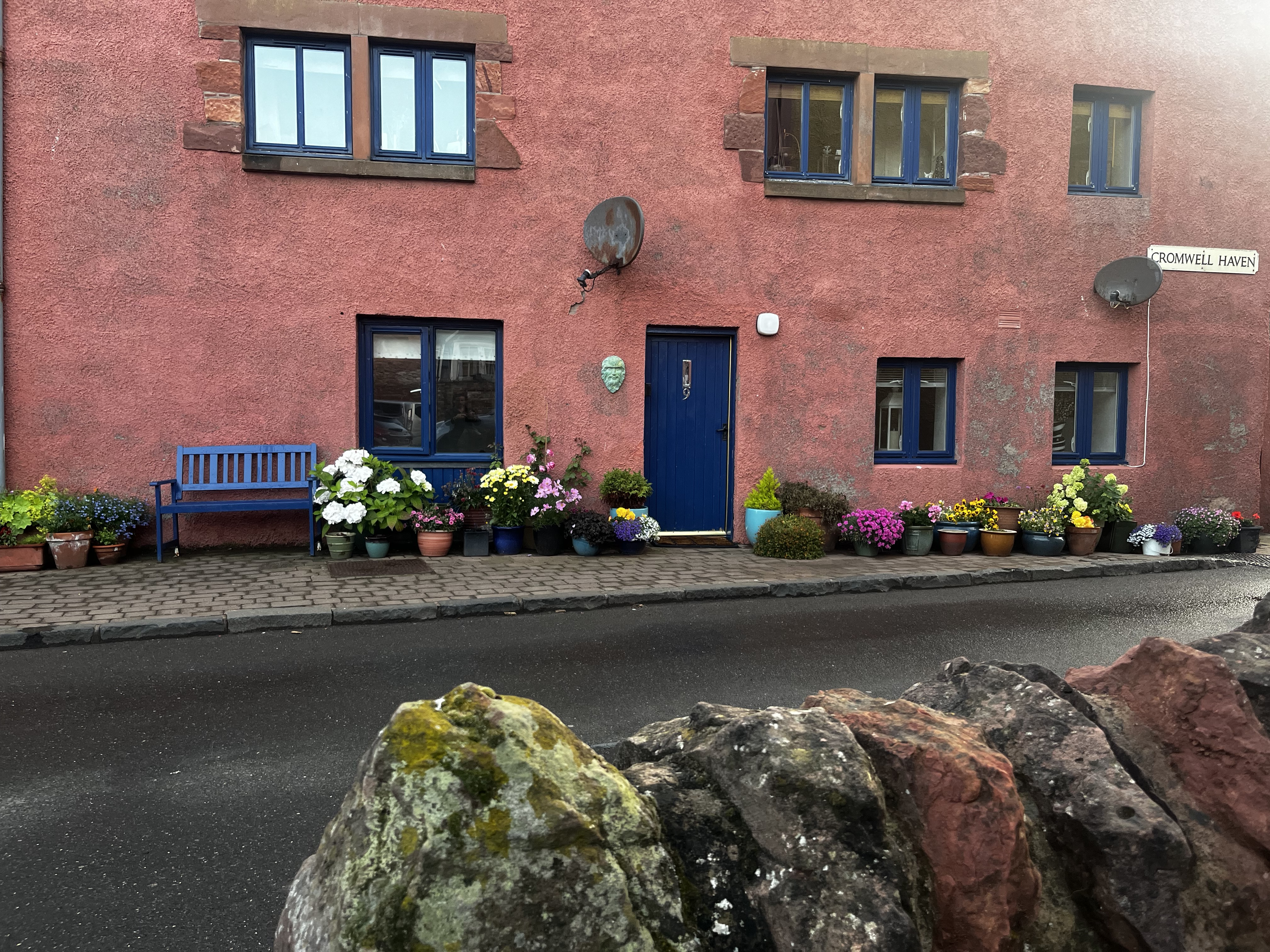 I quietly glance around and notice everything from a welcoming bench at street level to pots (and pots) of beautiful flowers in bloom on doorsteps. Wandering the side streets, alleyways, and harbor of town I feel welcome. Speaking of the harbor, the food is “Fresh from the boat to your plate” if you keep an eye on the lobster stand’s hours. Prawn Cocktail Pots were a light, fresh alternative to the standard Fish & Chips throughout Scotland.
