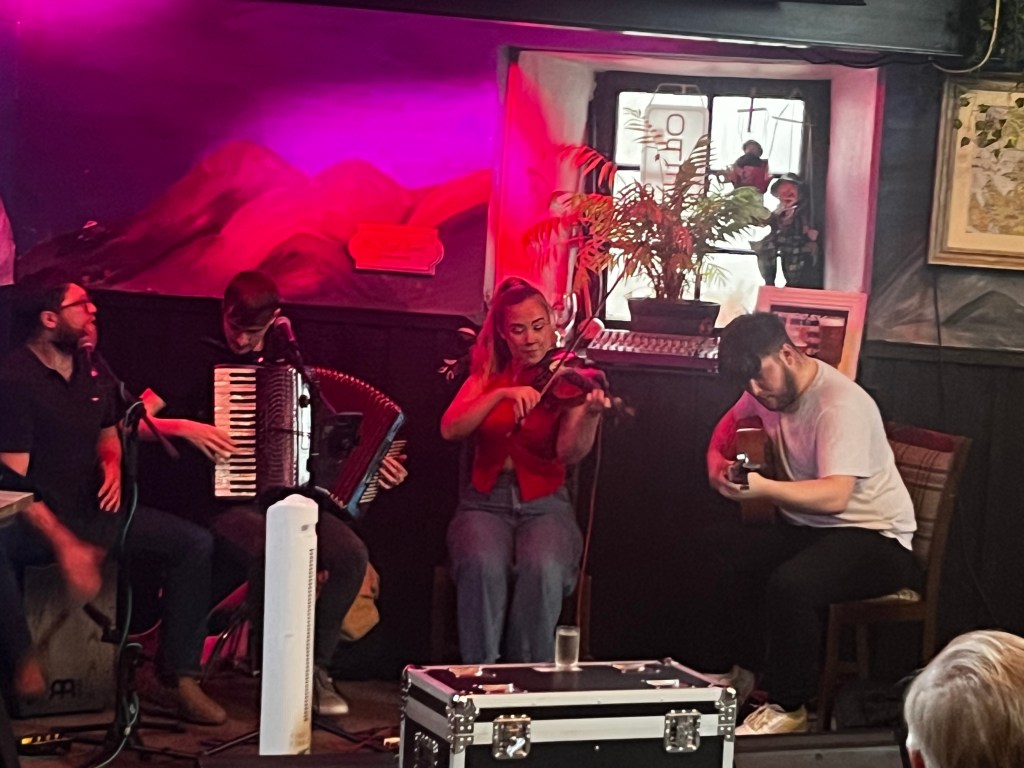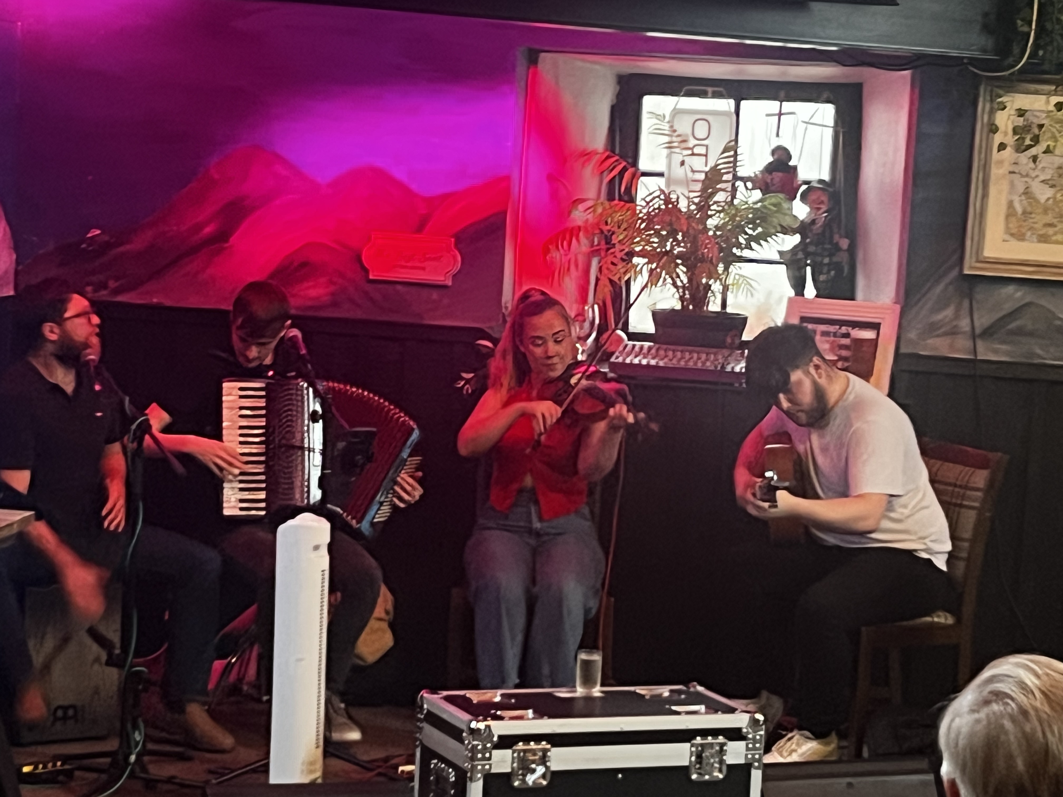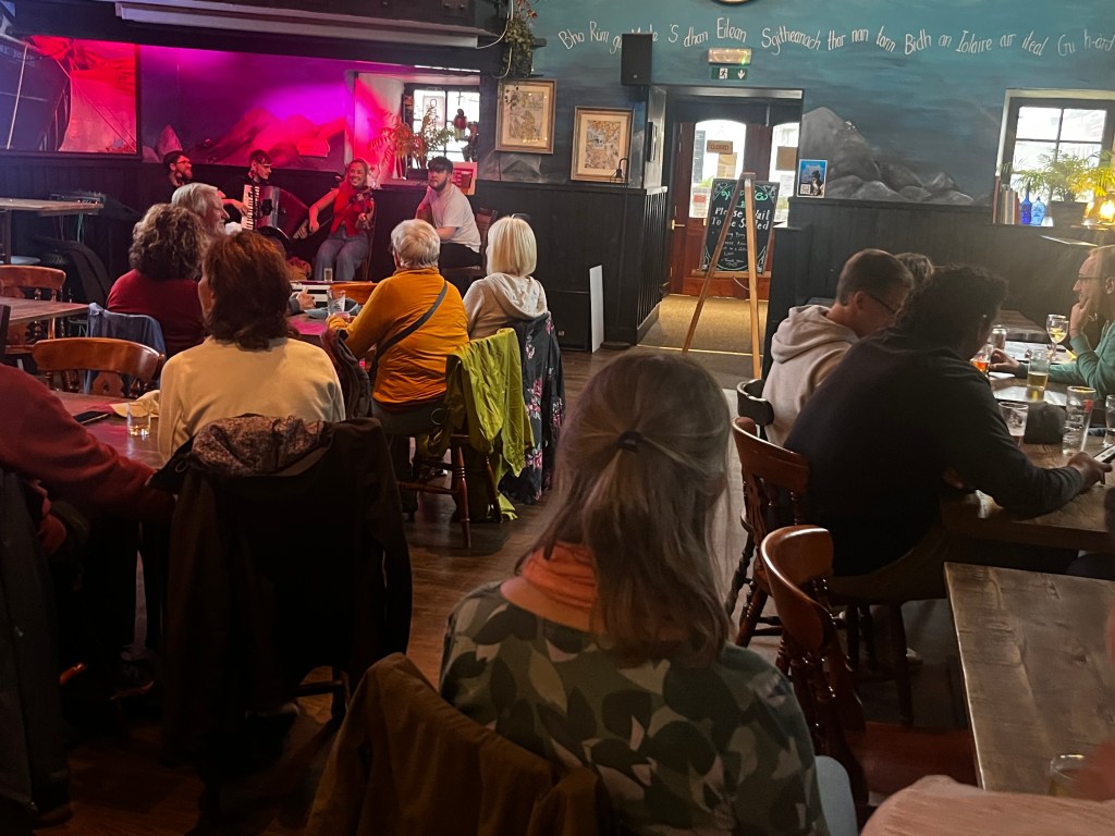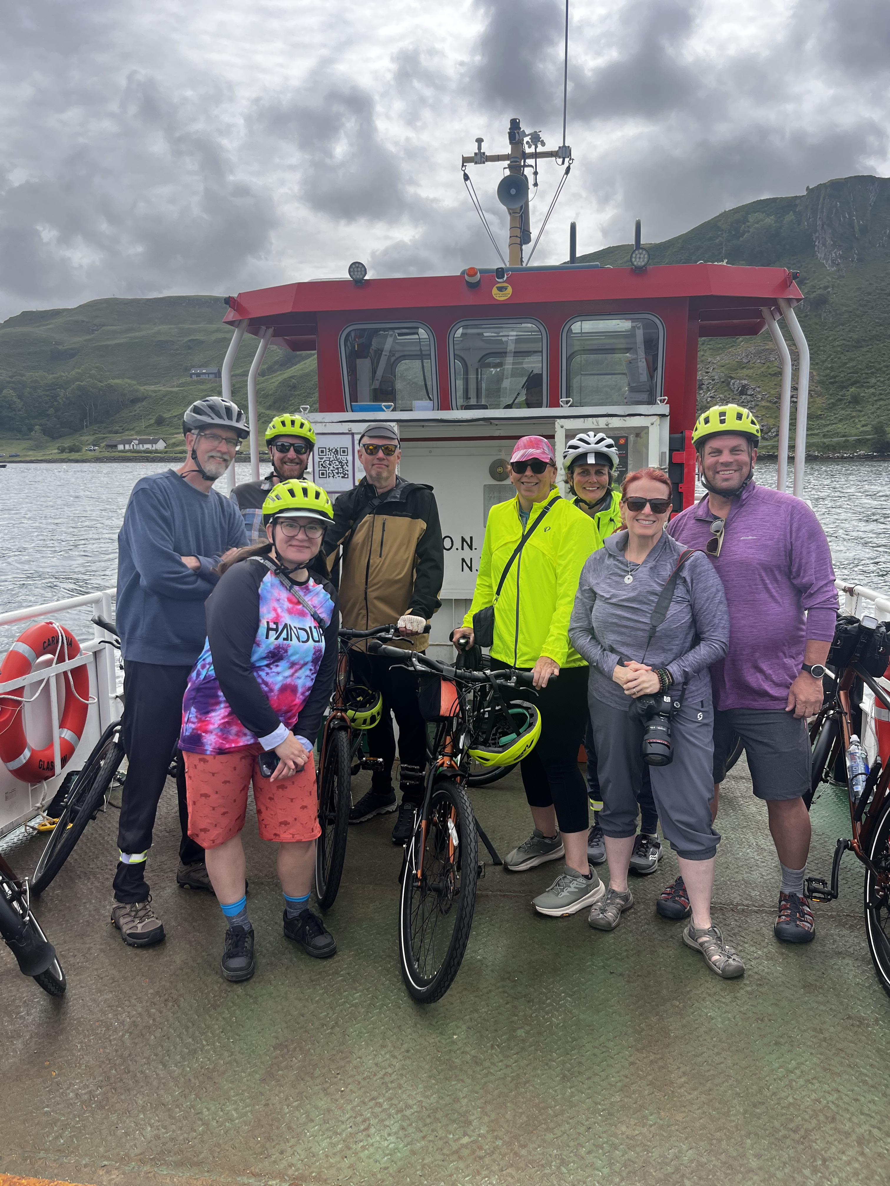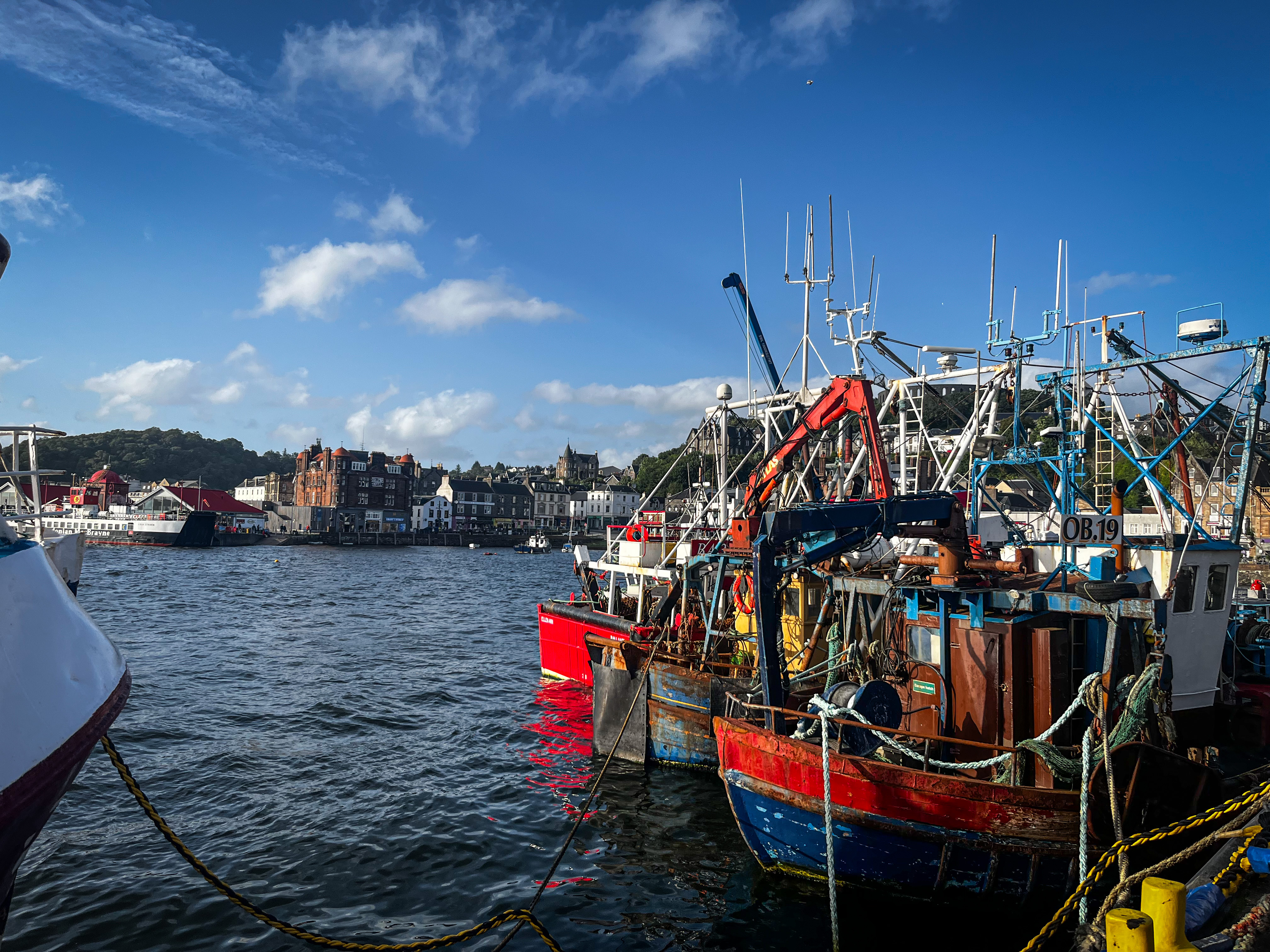 We were back to Oban via ferry and bike, then off to Markie Dan’s pub for drinks, food, and music. They were having a 2-day music festival with local musicians, kids dancing in the streets, and adults indulging in pints of beer and wee (or not so wee) drams of whisky. The music wasn’t Scottish – it was just a fun, joyous, celebratory time and a great way to kick off our time together.