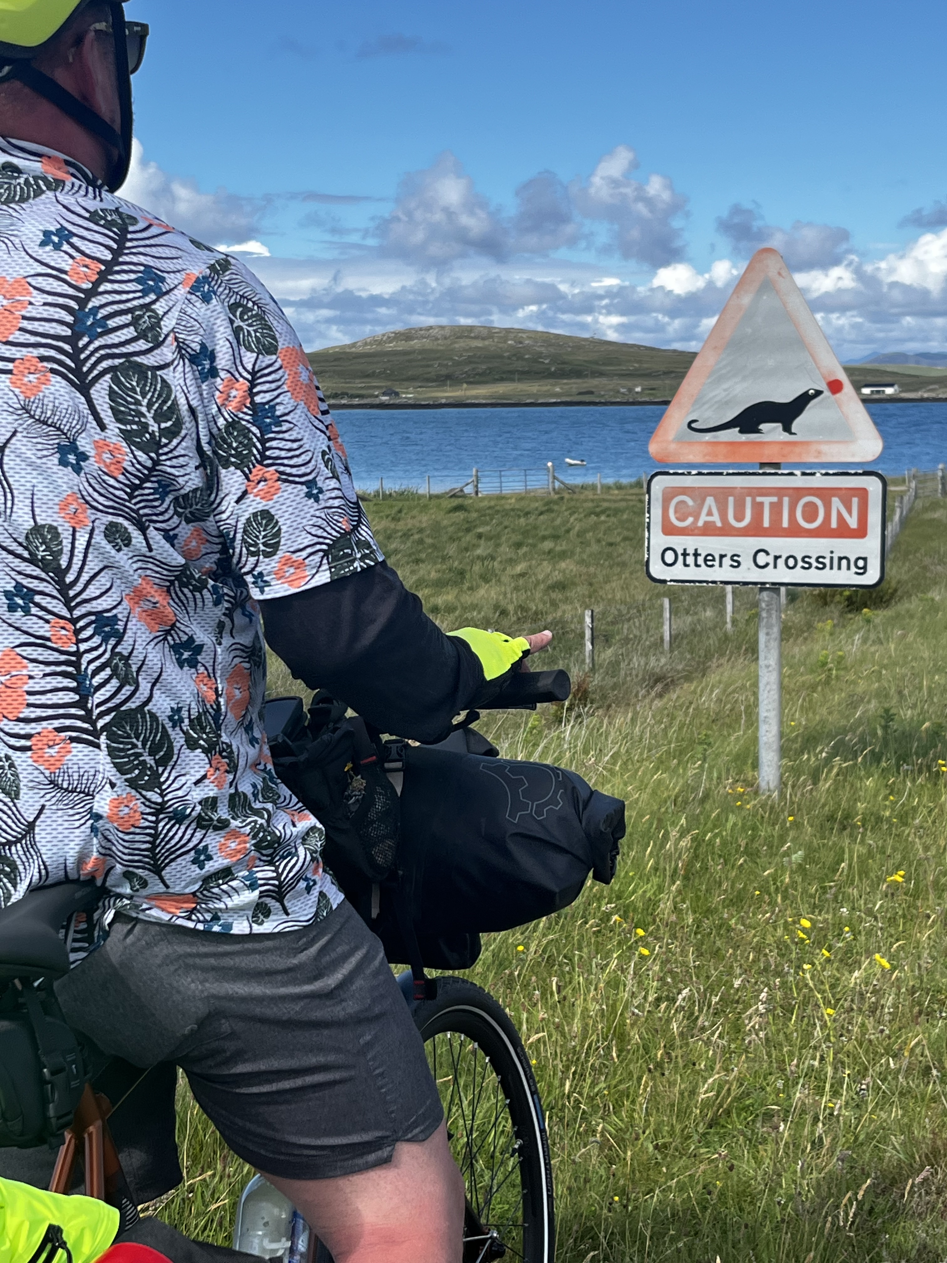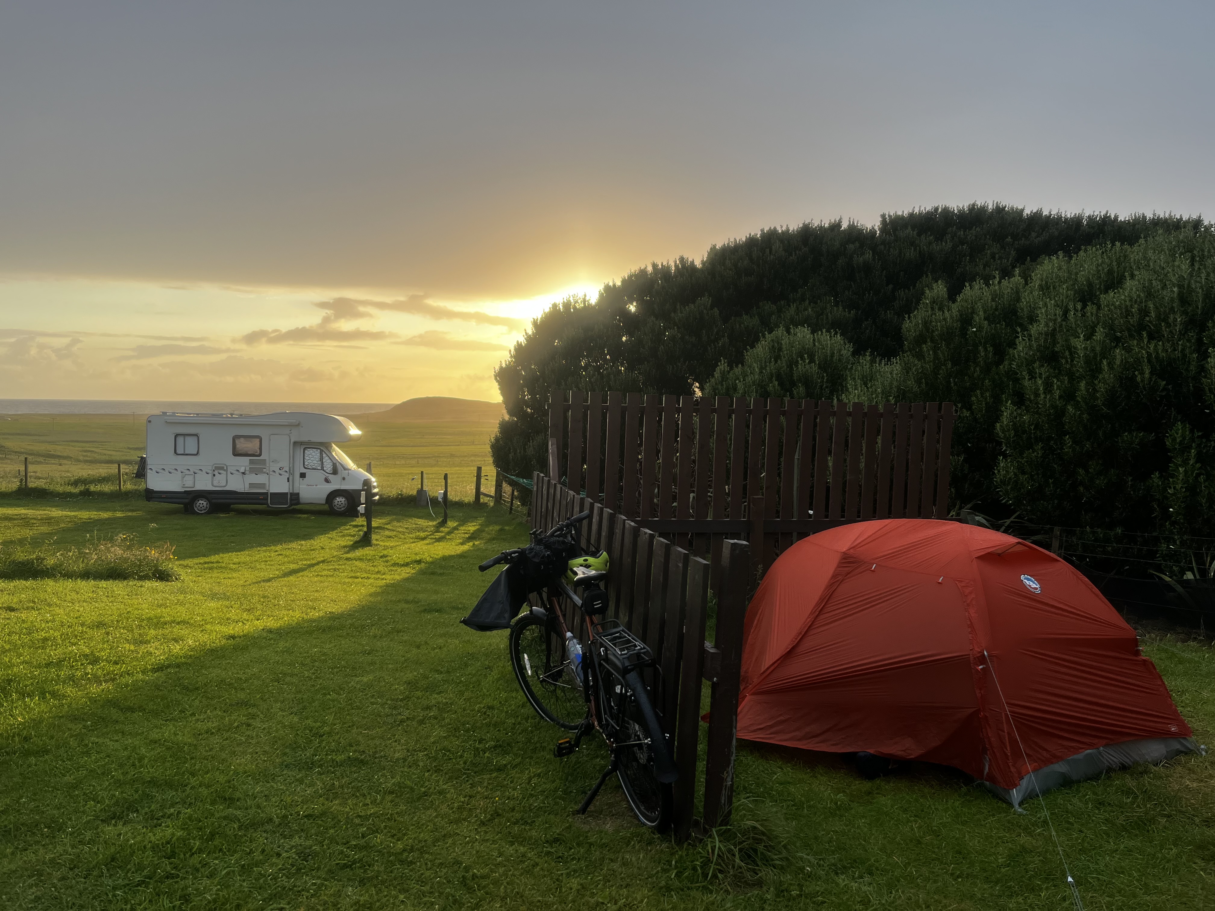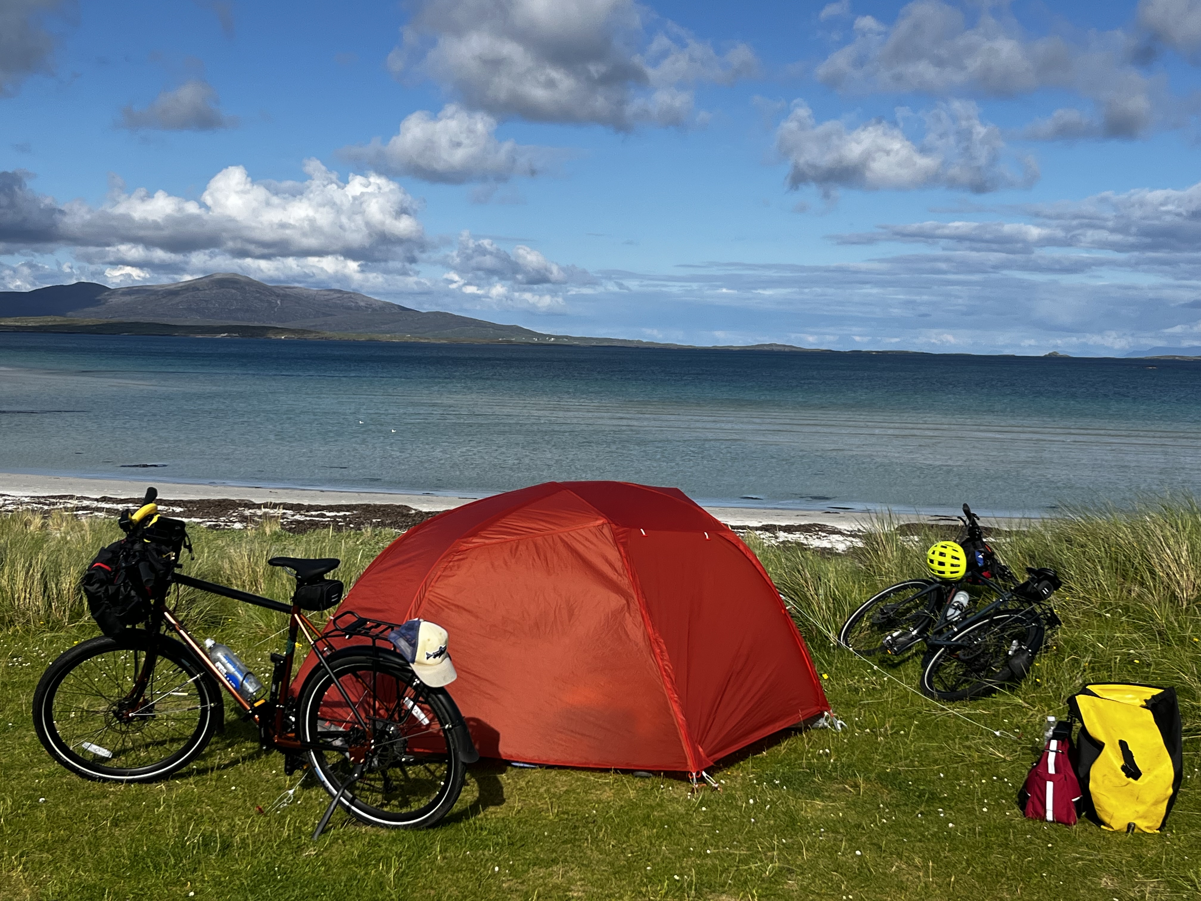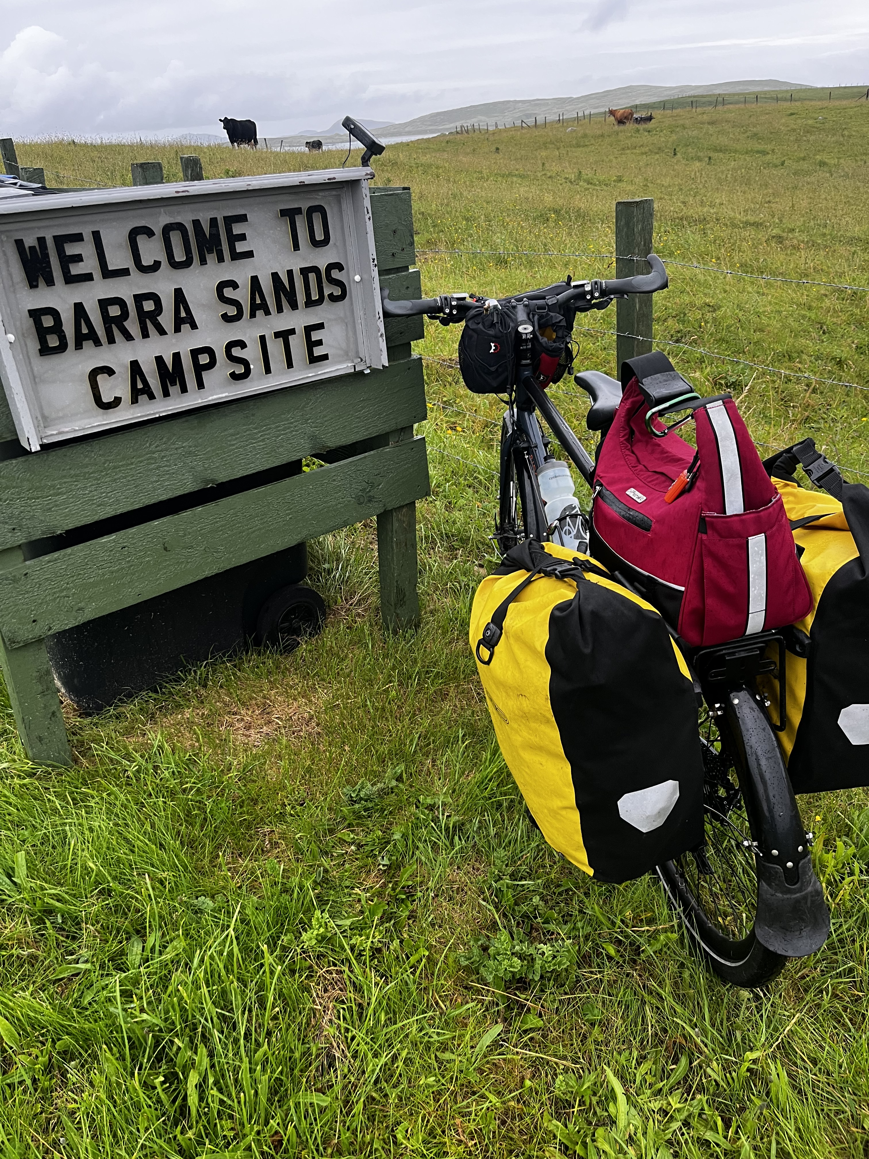This day we rode 32 miles and ended up at Otters Edge campground on Benbecula. Again, we were the only campers in our group. The seasonal staff was incredibly welcoming, giving us a tour of the store, the showers, and the common area where we could charge our devices, eat a meal at a table, and enjoy hot coffee.