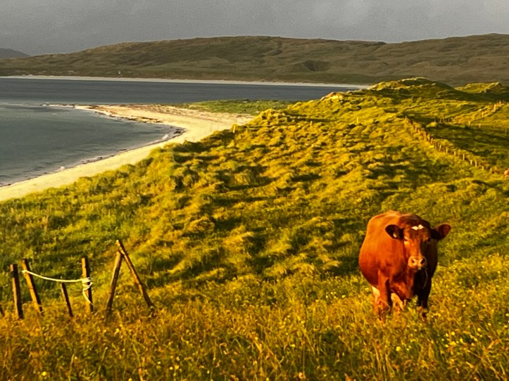 We had an early start the next morning and rode 43 miles to East Beach on Berneray. We were surprised, again, by the sunny weather. There was rain in the forecast, which is to be expected. We were on our way to “wild camp” on the beach, but we were undaunted.