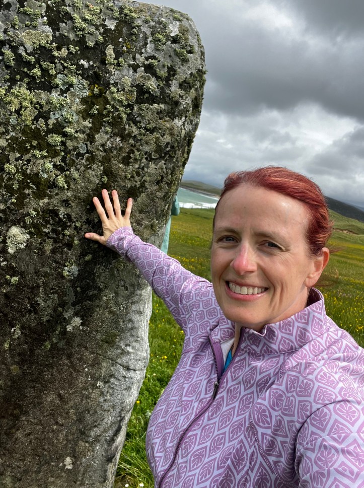 A bit down the road we stopped again, to see a standing stone. At least one member of our party was intent on seeing a standing stone while in Scotland, so I think this experience made his day! We were also just about at the 100 mile mark, so we honored our tradition of doing a “100 Mile Dance” and sending a video to a couple of friends who were not able to make it on the trip.