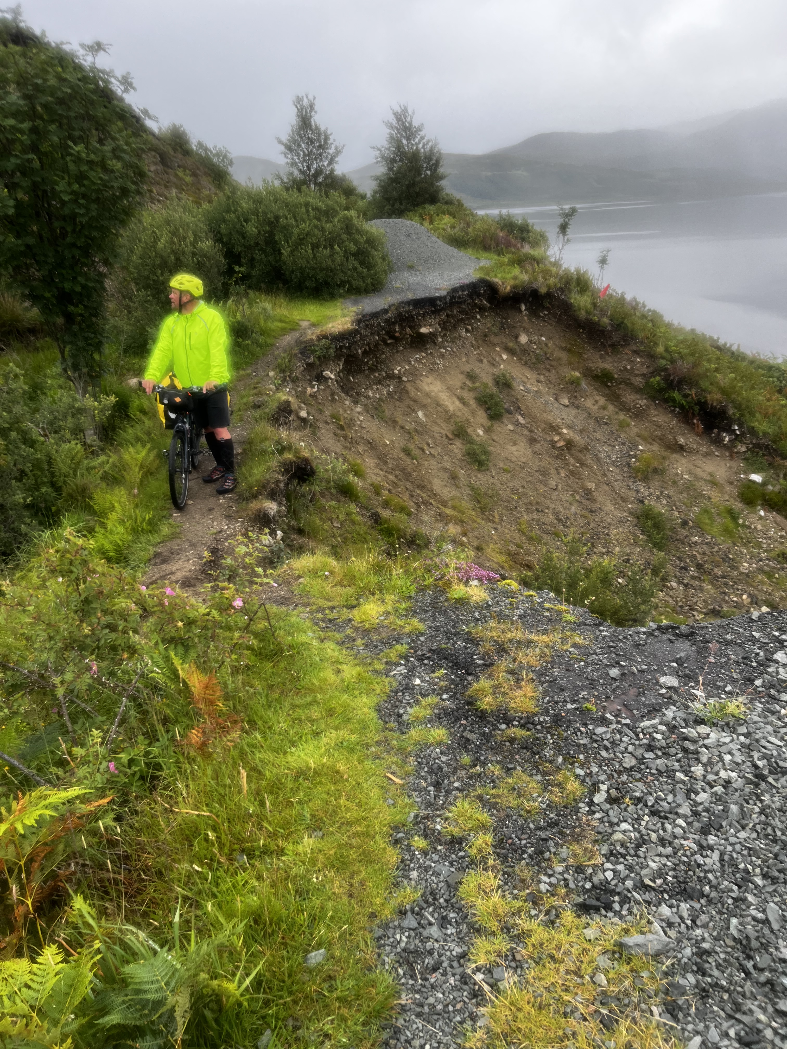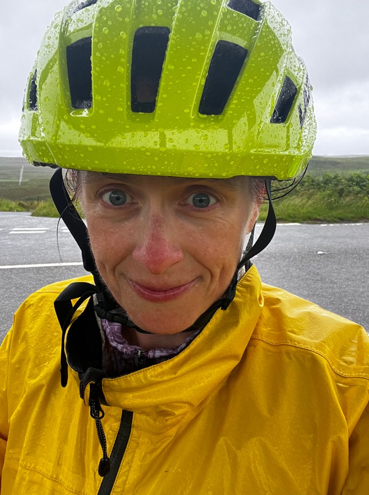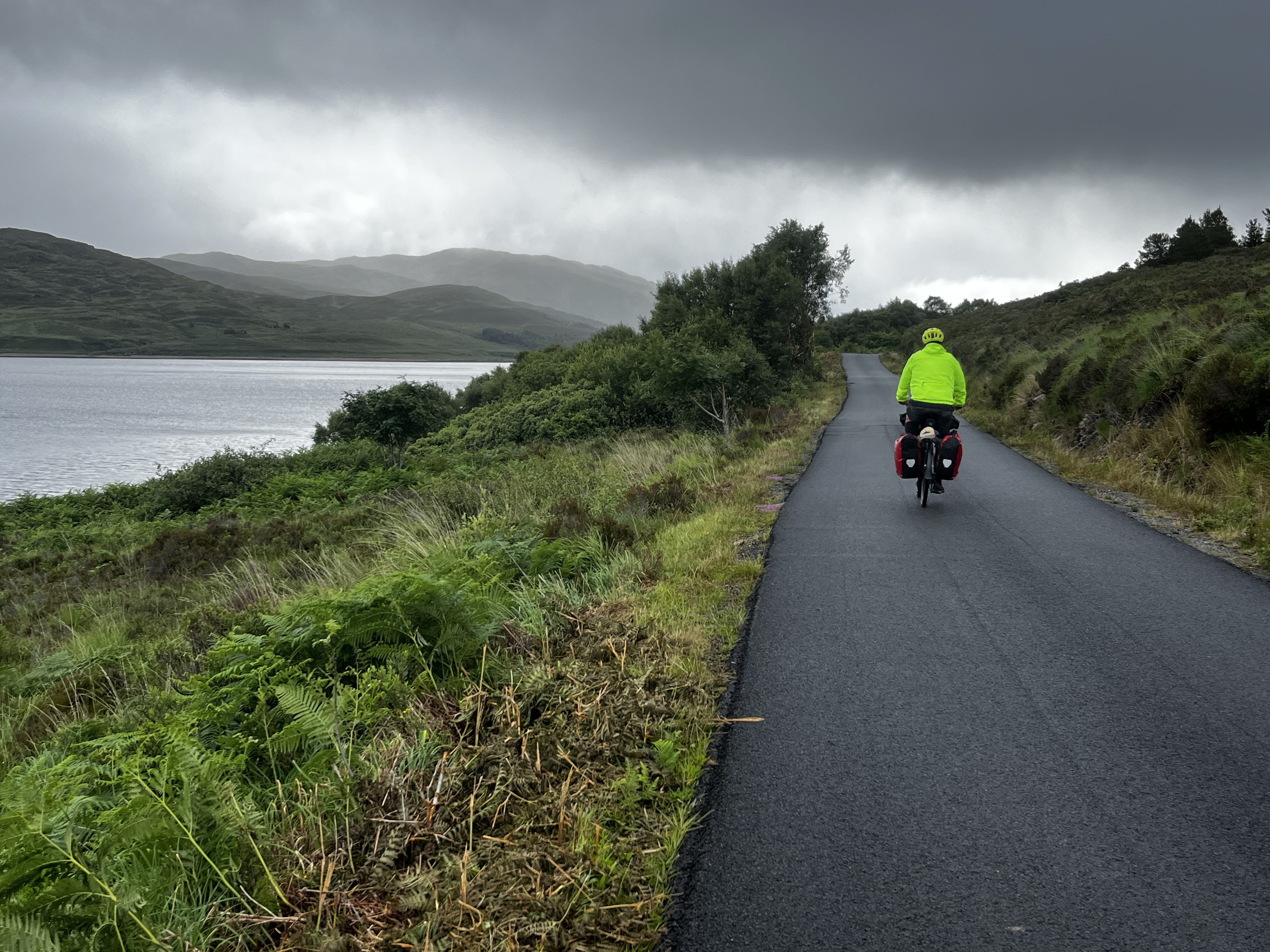 I’d been cautioned about the difficulty of this part of the route, even before we arrived in Scotland. It was hyped up in my mind so much that the sustained uphill wasn’t as bad as I’d expected. I was mentally preparing myself the duration of the climb, as if we’d arrive at the tough climb any moment. I credit this experience, of not realizing we were already on the tough climb, to being a stronger cyclist than I realize or give myself credit for. And the scenery, even in the rain, was breathtaking. The scenery was breathtaking because of the rain.