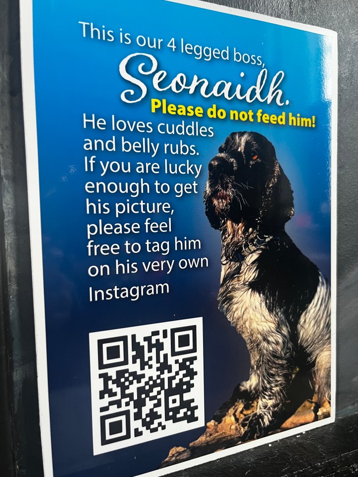 Later that evening our group came together to enjoy live music and drinks at 1820 Pub. I had my first fish & chips of the trip and did not feed any scraps to the resident dog-o, as I was playfully (but seriously) instructed. We were getting close to the end of the time that all 9 cyclists would be together. Only 2 of us planned to ride the last day of the route. In the week that followed, some would fly home to the states, while others explored Edinburgh or moved on to other parts of Scotland.