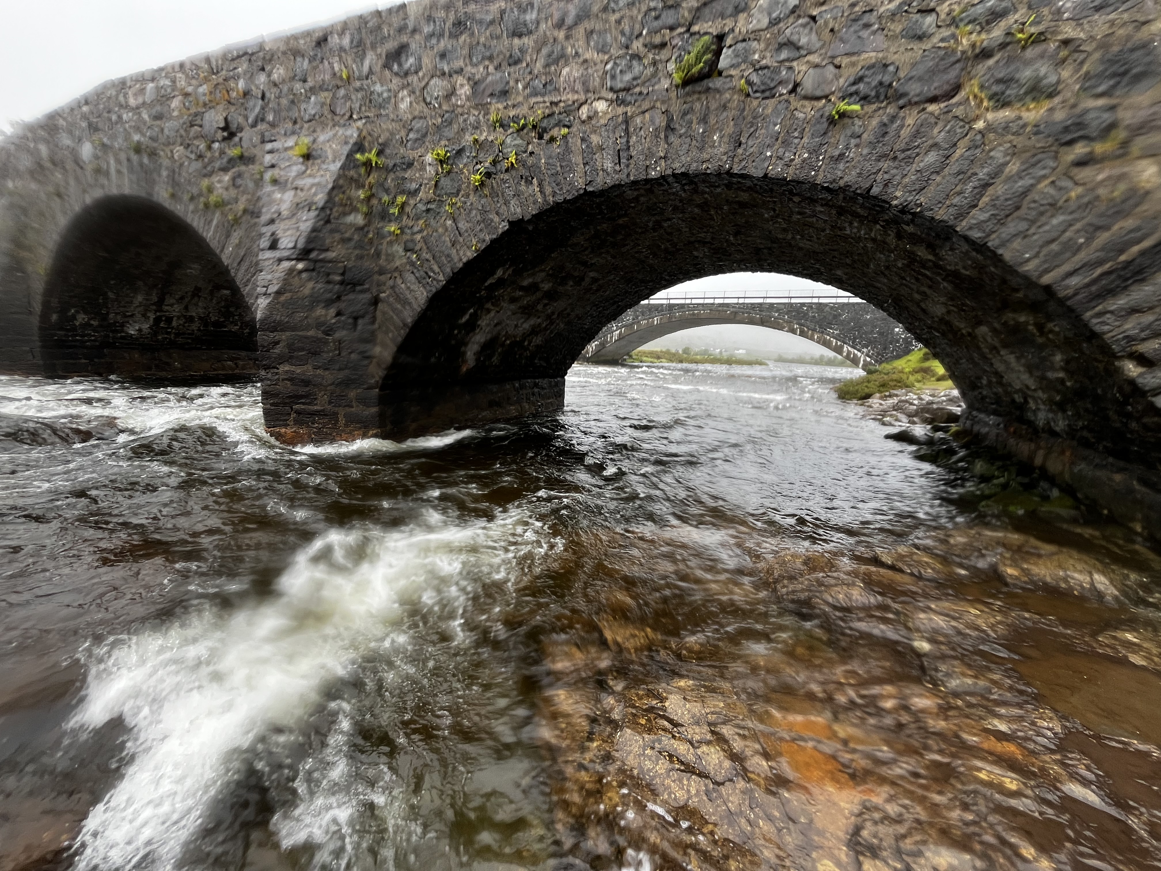 One nonnegotiable was that we were intent on stopping at Sligachan, to put our faces in the river. Why? For the promise of eternal beauty, of course! Is the river enchanted by fairies, as we’d heard? Is there black magic at play? The views are spectacular and the bridge is iconic, but did I really have to get on hands and knees, to submerge my face?