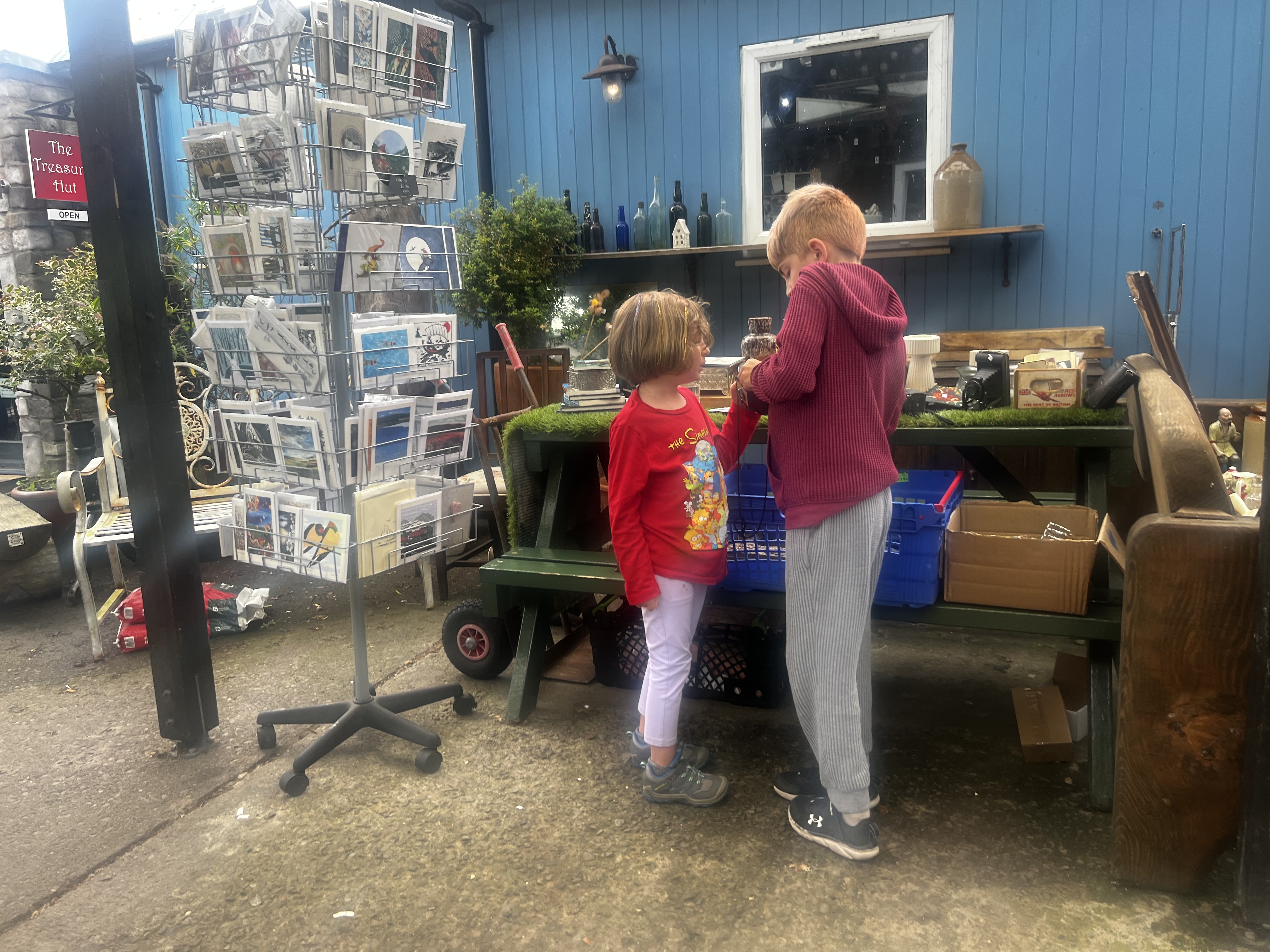 A couple of kiddos were trying to figure out what film cameras were for, on a table outside of the antique shop. The shelves inside were loaded down with old-time trinkets, knick knacks, and bric-a-brac. I was careful not to walk away with a mug featuring a hairy coo. There was no room in any of my bags and I was already wondering if I’d ever get all the clothes, camping gear, books, and souvenirs back into my suitcase for the trip home.