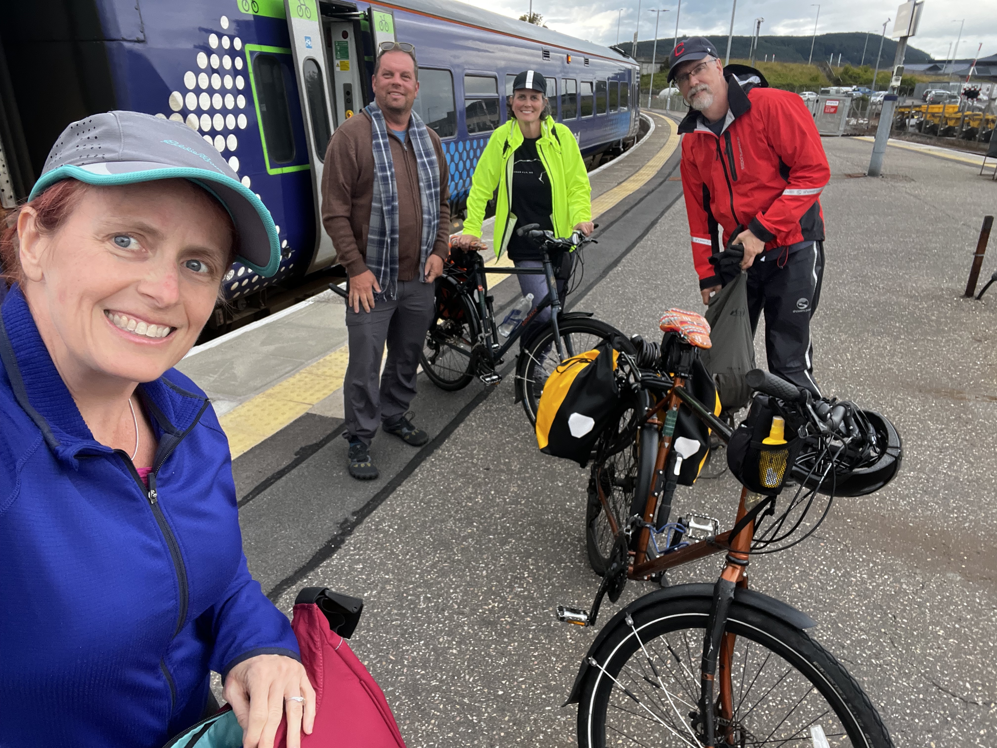 Most of our party was gathered on the Scotrail train from Glasgow to Oban. We were waiting on just one member of our cycling party to arrive. Flight delays put her one day behind the rest of the group. We had each made our own plans for lodging and for activities before/after the bike portion of the trip, so we kept on.