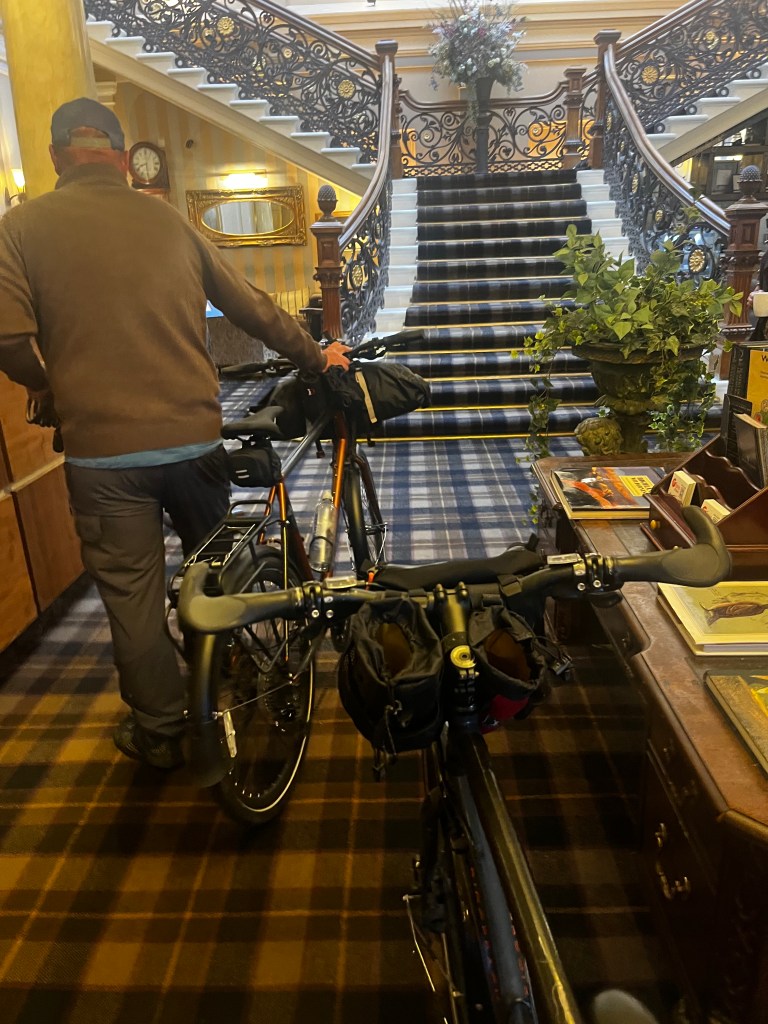 In a moment of luxury, and because of a drop in rates just prior to our trip, we stayed at Royal Highland Hotel in Inverness. I’m surprised they let us in, with the way was looked and smelled, after 6 days of riding and all that rain. Rain-soaked visitors are to be expected, I suppose, in Scotland.