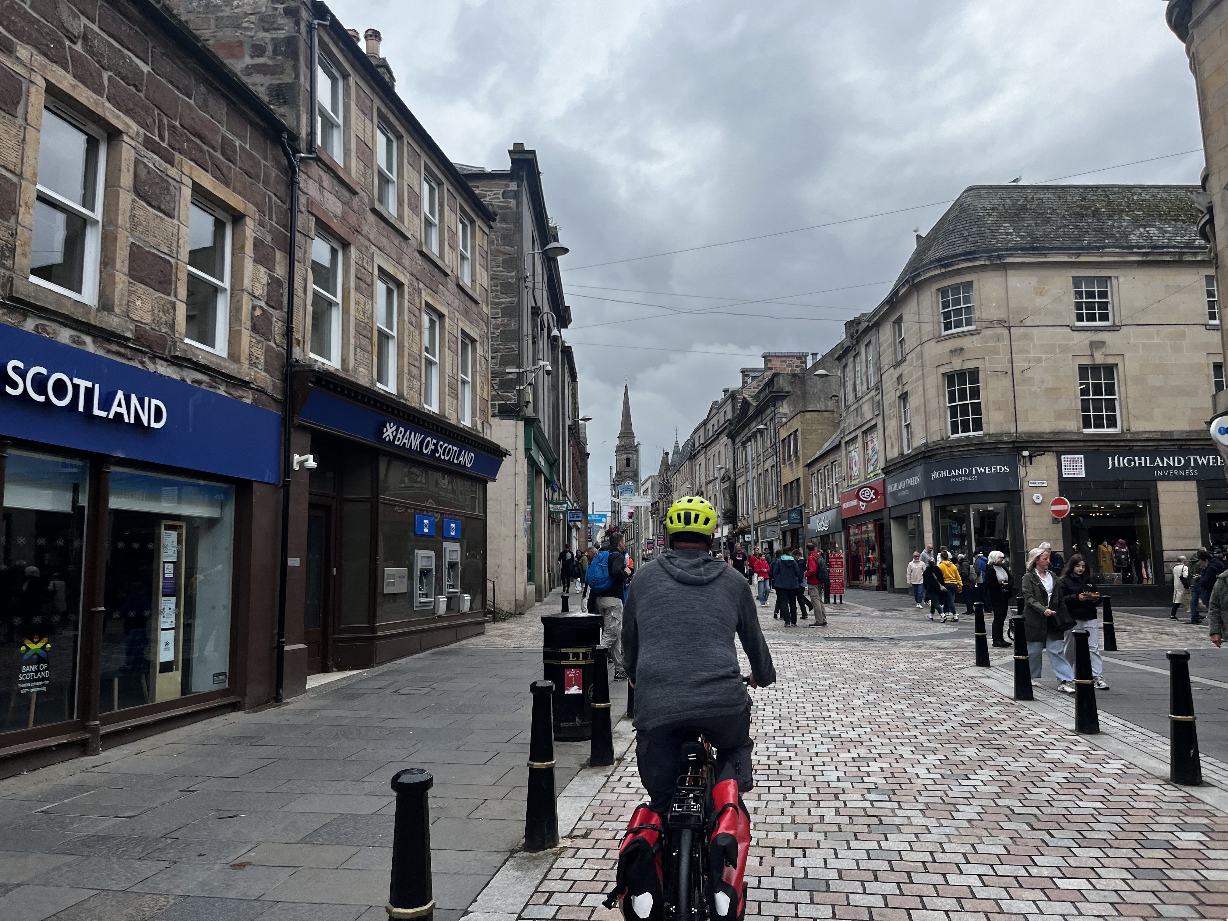 I wanted to see a bit of Inverness, so we kept the bikes for another half day and made a loop around town. We merged with other tourists on the streets and walkways that were closed to vehicle traffic, seeing more of Inverness than we would have on foot. This is one of the great pleasures of cycling. Moving at the speed of a bike is just fast enough to let you experience the city, covering more ground. Moving at the speed of bike is just slow enough to notice details you’d miss if you were traveling by car, stopping just about anywhere you like. You can take the bike with your or lock it up and explore on foot.