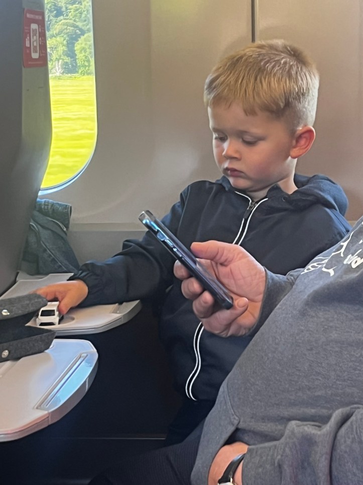 Passengers, both local to Scotland and visitors like us, hopped on and off the train. A young Scottish boy was delighted when we offered him a Matchbox car that had been brought over from the states, expressly for this purpose. When he wasn’t asking his grandfather how much longer it was to their destination he was quite entertained, spinning the car in the cupholder attached to the seat in front of him. The spinning car crashed to the floor once or twice, which elicited a pouting lower lip, but grandpa obliged and returned it to him.