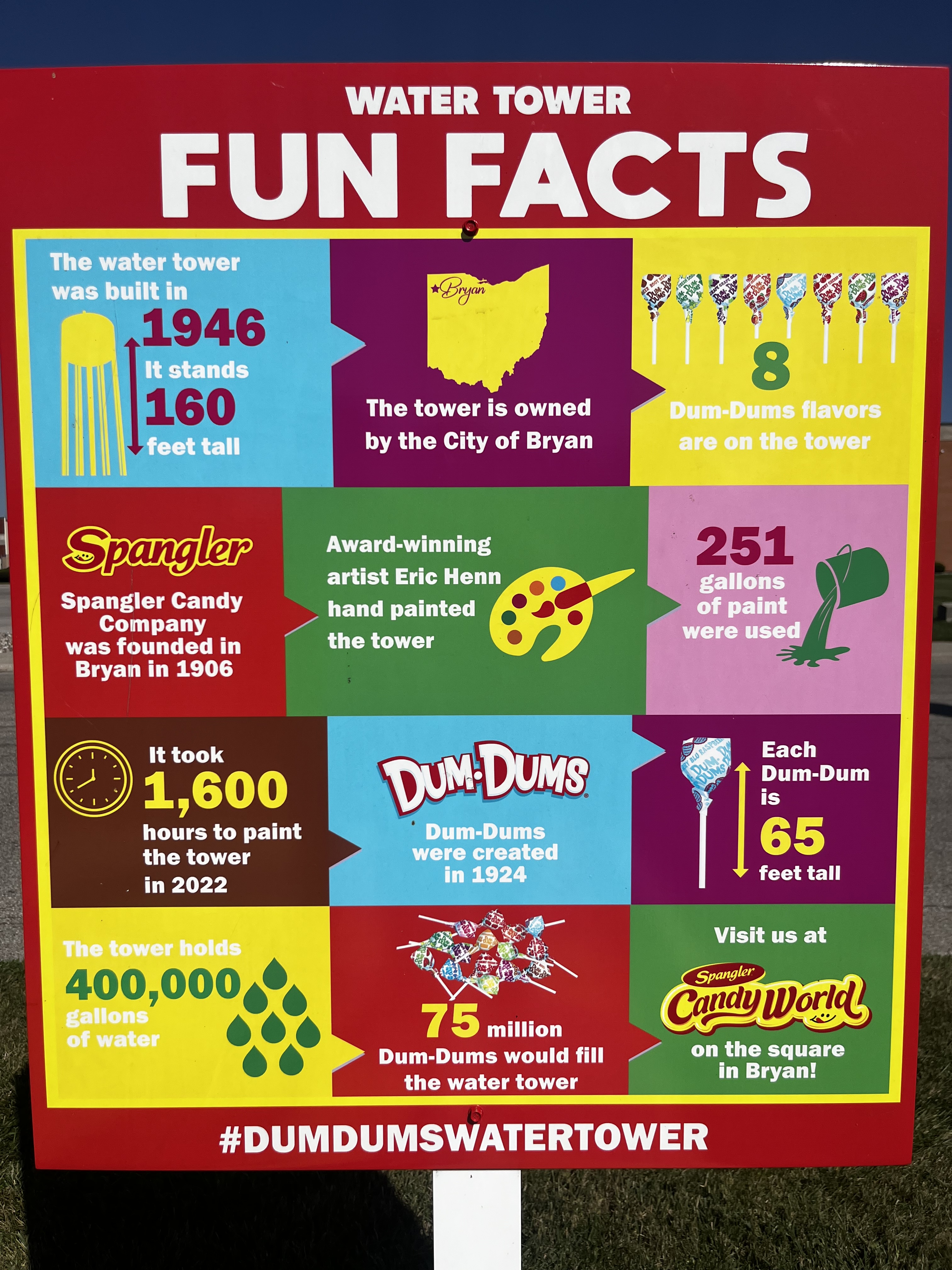 “BRYAN, OHIO – July 6, 2022 – Spangler Candy Company and the Bryan Board of Public Affairs (BPA) have announced they are collaborating to redesign the water tower on the northwest side of Bryan and create a landmark attraction for the community.”