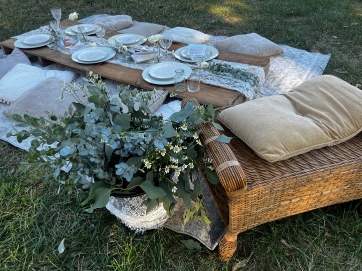 Victorian-style picnic seating is provided by The Picnic Dairies, a pop-up service that will bring a picnic-style teatime to you, around Columbus! It’s flowery and romantic, with books of poetry to entertain. Cushy pillows provide seating and decorative greenery compliments whatever park-like setting or cityscape you choose. So pretty!