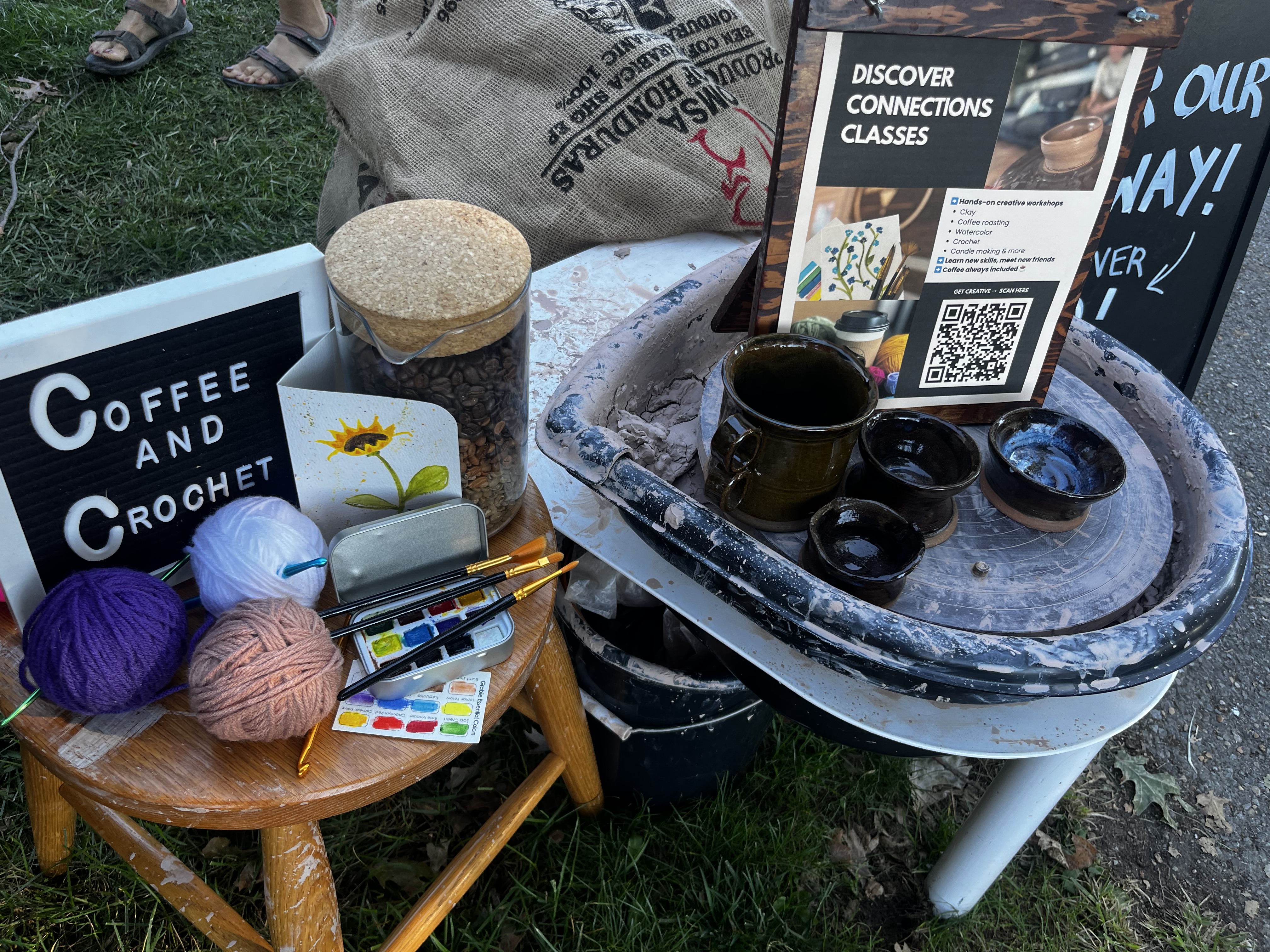 Between coffee samples in the signature festival coffee mug, the fair grounds are brought to life by local art, live performances, and plants grown from cuttings. The art doesn’t have to be coffee-themed, but isn’t it extra special when it is? Consider the Emotional Support Coffee — “When faced with the hot water of life the Coffee Bean transforms its surroundings into something wonderful. You to can do hard things.”