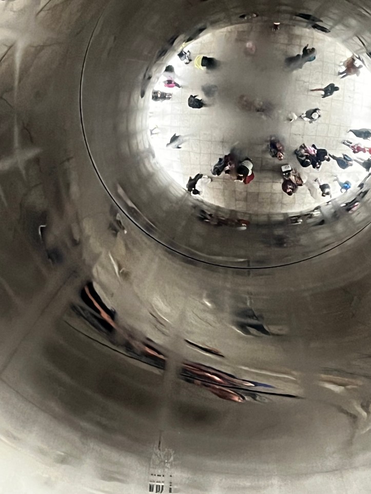 Okay, you’ll get the idea of what your reflection will look like, standing under Chicago’s famous metal sculpture if you think of ‘Honey I Shrunk the Kids.’ Okay, okay – I’m showing my age with these 1980s movie references. Think of the ‘Ant Man’ Marvel franchise. What’s my point? The sculpture is formidable and you’re nothing but a speck reflecting back.