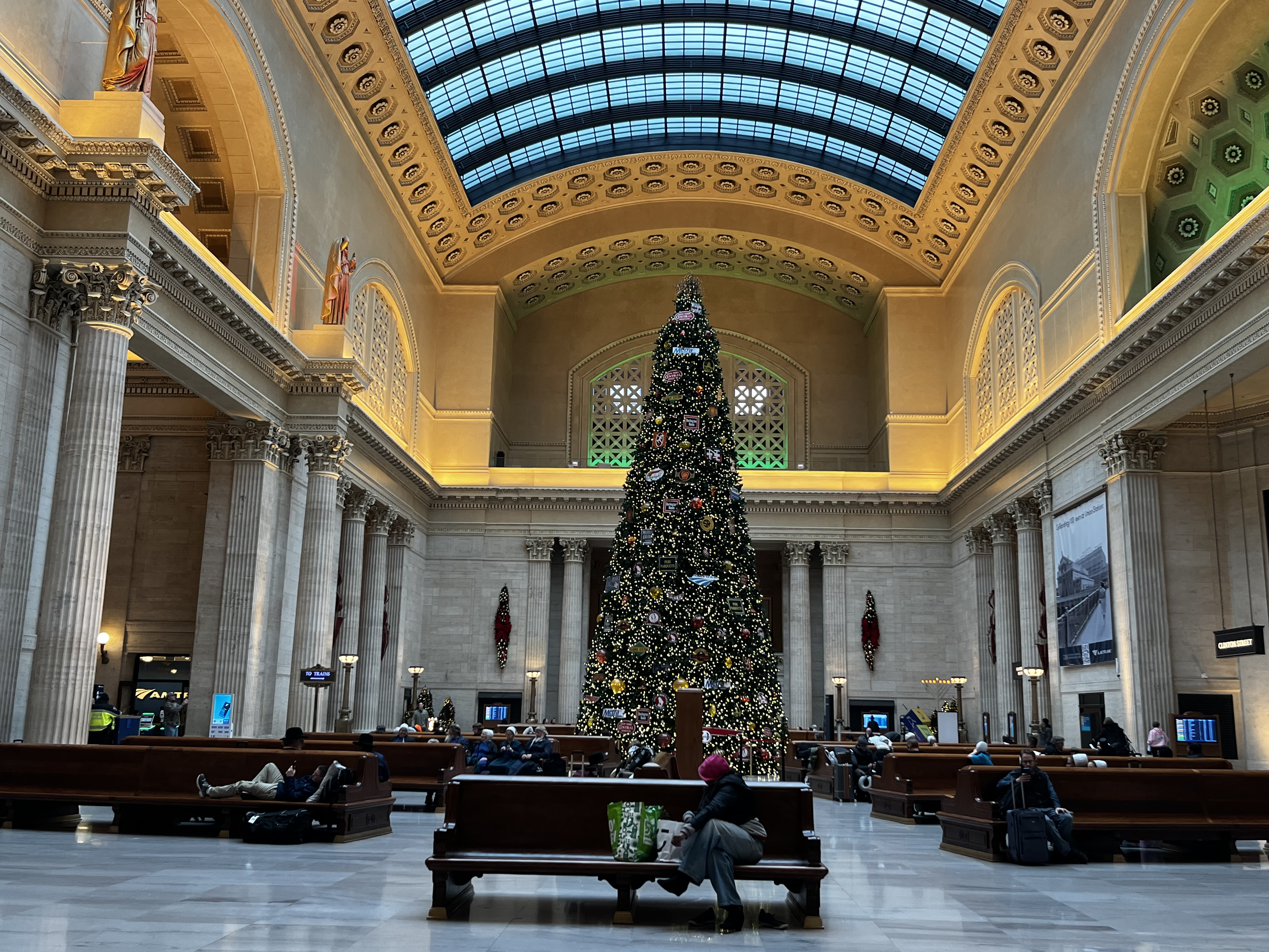 Chicago Union Station is the downtown terminus of six of Metra’s 11 lines. For me, a trip downtown represents an opportunity to explore the city’s historic sites, modern art, colorful holiday decorations, and delicious food. Public transportation makes that possible. I thought I’d take you along!