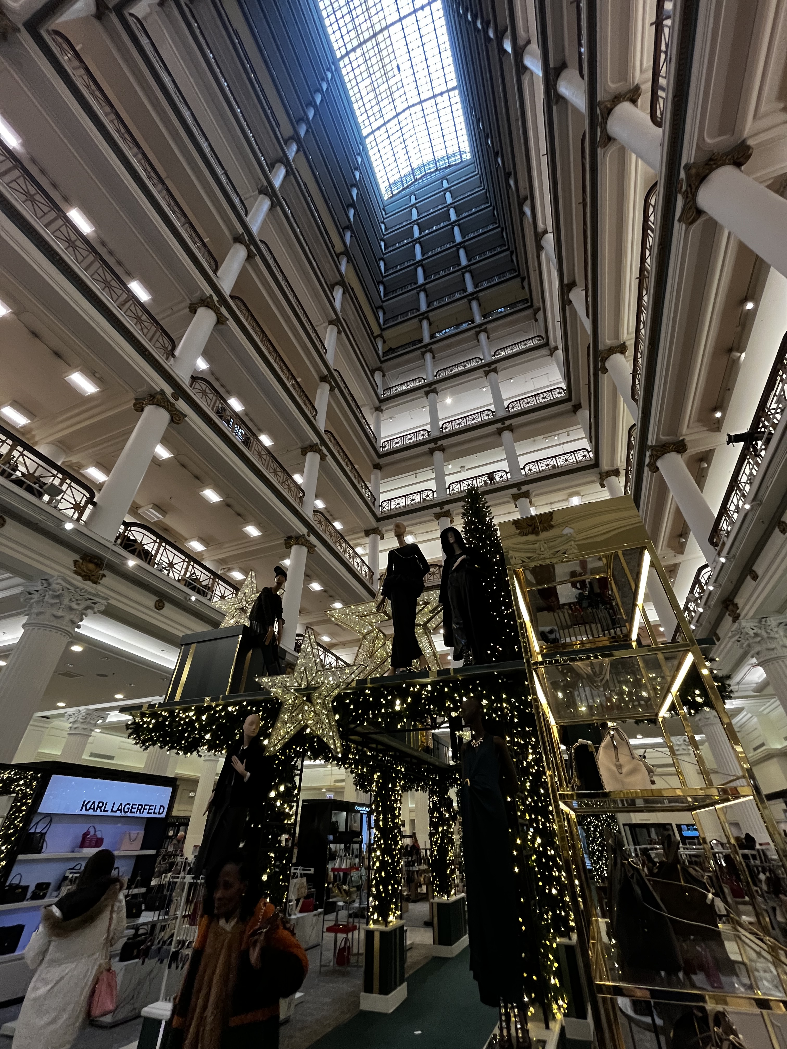 The store itself is a sight to see, all decked out for the holidays. Perfume, handbags, and women’s fashion are right inside the door. A downtown department store of this magnitude always reminds me of Bugs Bunny’s department store elevator scene — “6th floor – rubber tires, nylon hose, bobby pins, girdles, alarm clocks, bourbon, butter, and other picture postcards.” For whatever reason, in my mind it’s “11th floor – women’s lingerie!” Be aware of the dangers of department store elevators. The life-threatening antics of Bugs Bunny could be the engineering reasoning behind installing escalators.