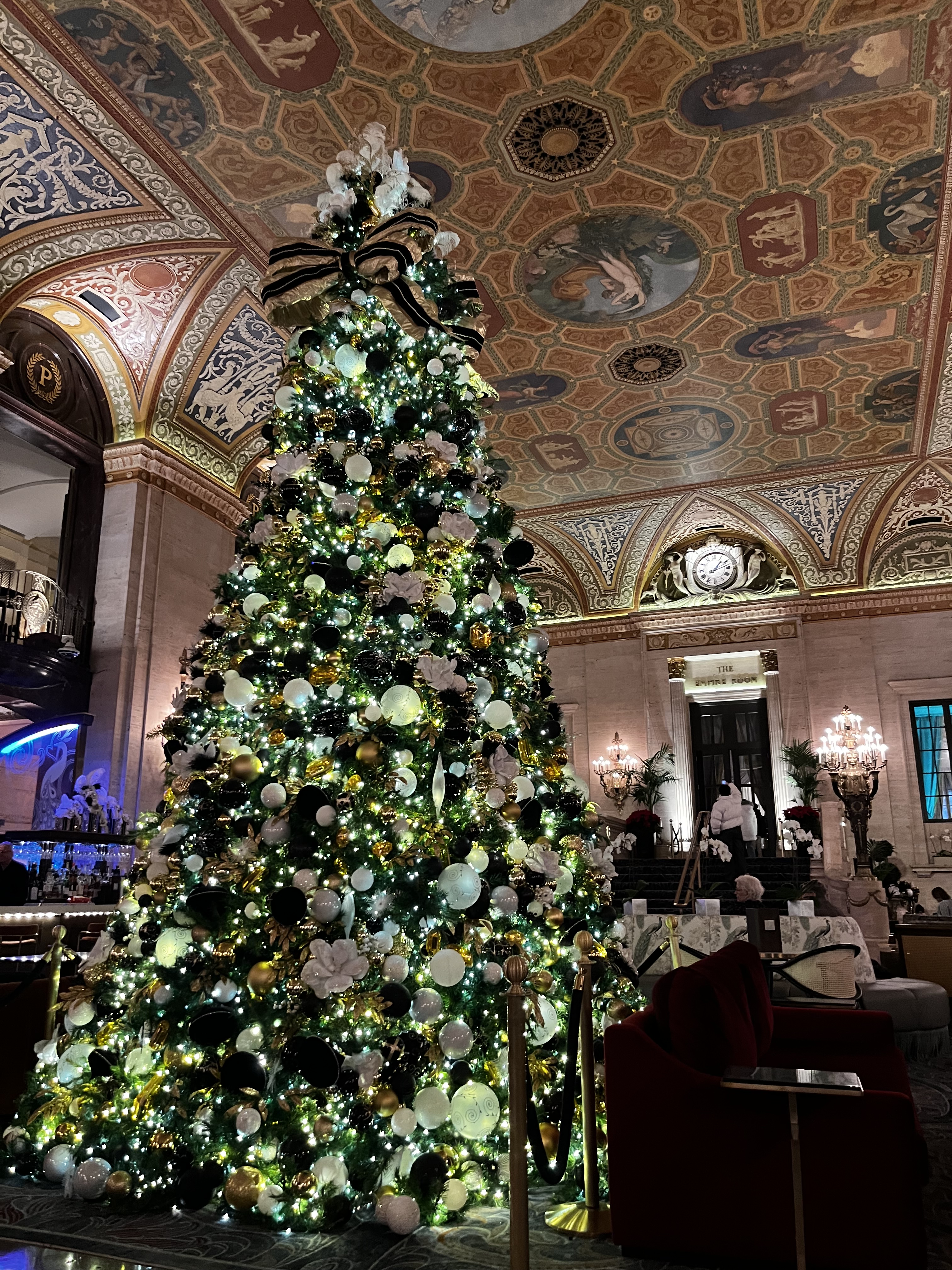Our next stop, to take in the holiday decorations, was the stunning lobby of Palmer House, a Hilton hotel. It’s lovely, and we stayed there once, on holiday. (I’ve been to Europe, so I can refer to my weekend getaway as being ‘on holiday,’ right?) On my next visit I’ll have to plan my sweet treat to be indulged in at Palmer House. My affinity for chocolate is on display here.
