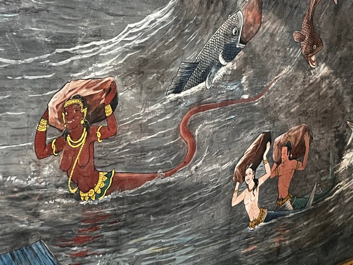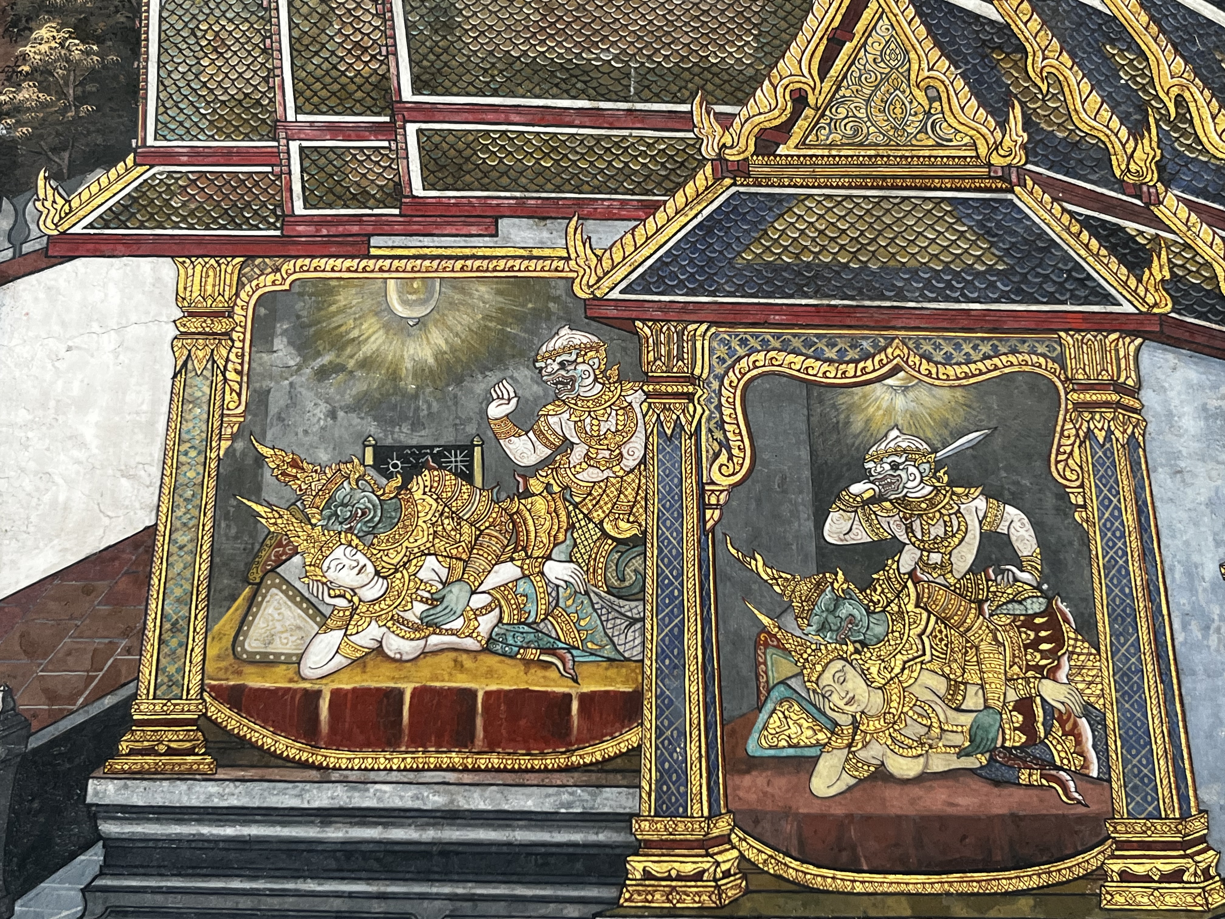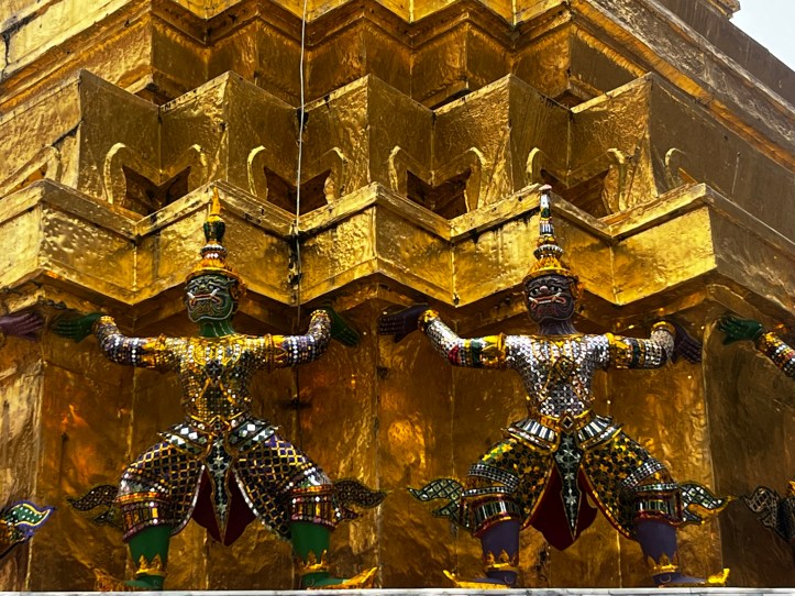 I can’t pretend to be an expert when it comes to the many stories being told through paintings, statues, and architecture at the Grand Palace. But I’m certain it’s action-packed, full of adventure, and very much otherworldly. Creatures are half-human and half-fish, half-elephant, half-fantasy. There’s struggle. There’s determination. There’s victory. There are feats of great strength and acts of great love. Religious conviction is tested and devotion is proven.