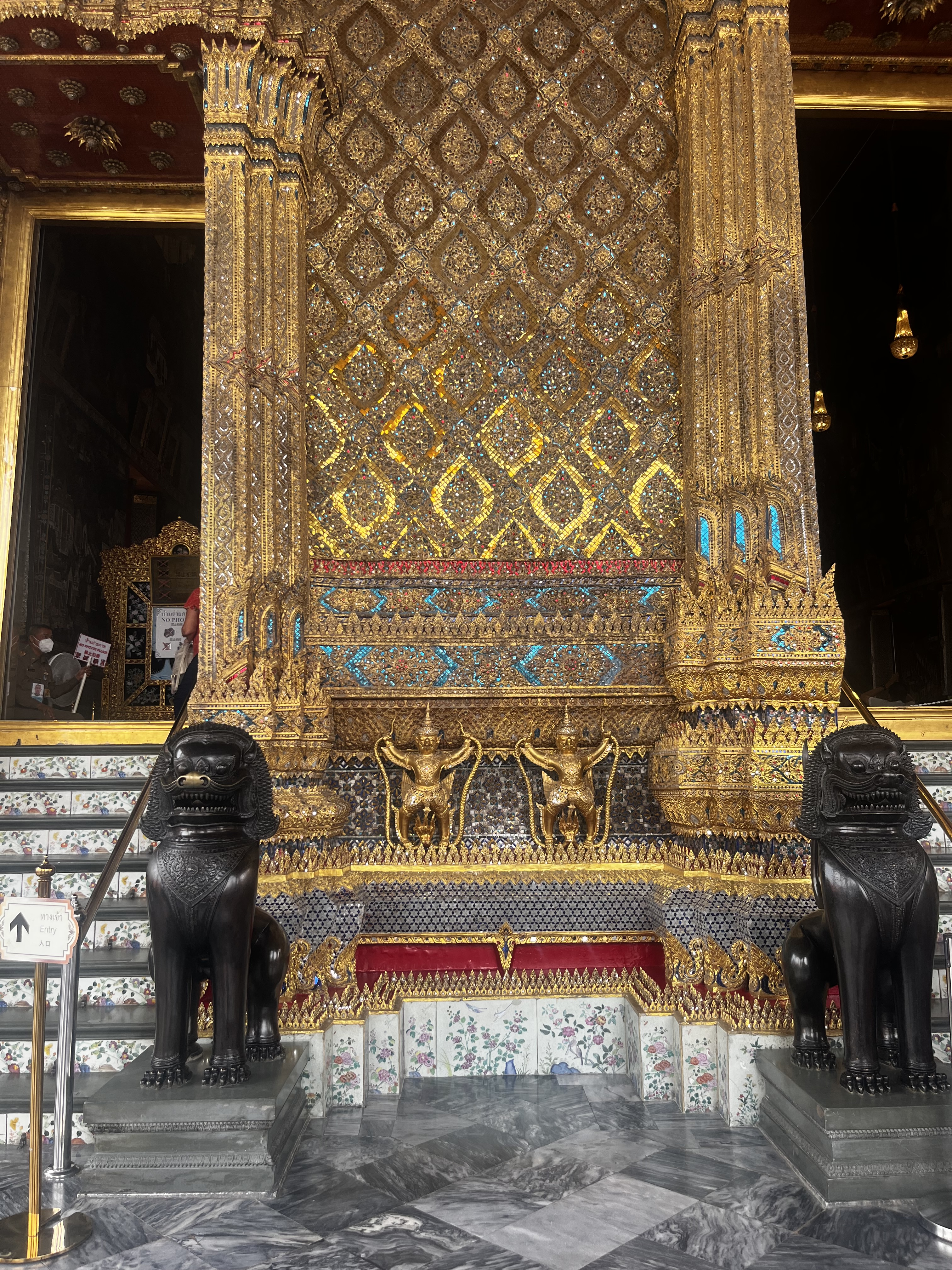 The Grand Palace is more than a building, more than a structure, more than an enclosure. It’s a sprawling complex that deserves the better part of a day’s sightseeing if you’re planning a visit. The architectural style, color pallet, and sparkling jewel-toned adornments are just what I think of when I imagine visiting Thailand — more so than the skyscrapers street vendors of downtown Bangkok.