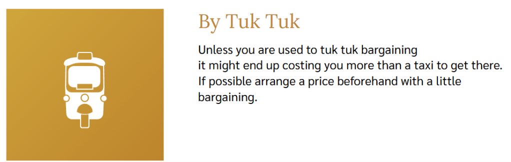 There is loads of practical information about planning your visit to the Grand Palace on their website, but the bit of advice below made me chuckle knowingly. Negotiating alternate modes of transportation can be a bit of a challenge. Sometimes you learn this the hard way. Sometimes, because of the monetary exchange rate in the country you’re visiting, it’s not worth negotiating when the ride from the airport to your hotel is $5 USD instead of the anticipated $4 USD. You just want to get to your hotel safely and don’t mind paying in cash either.