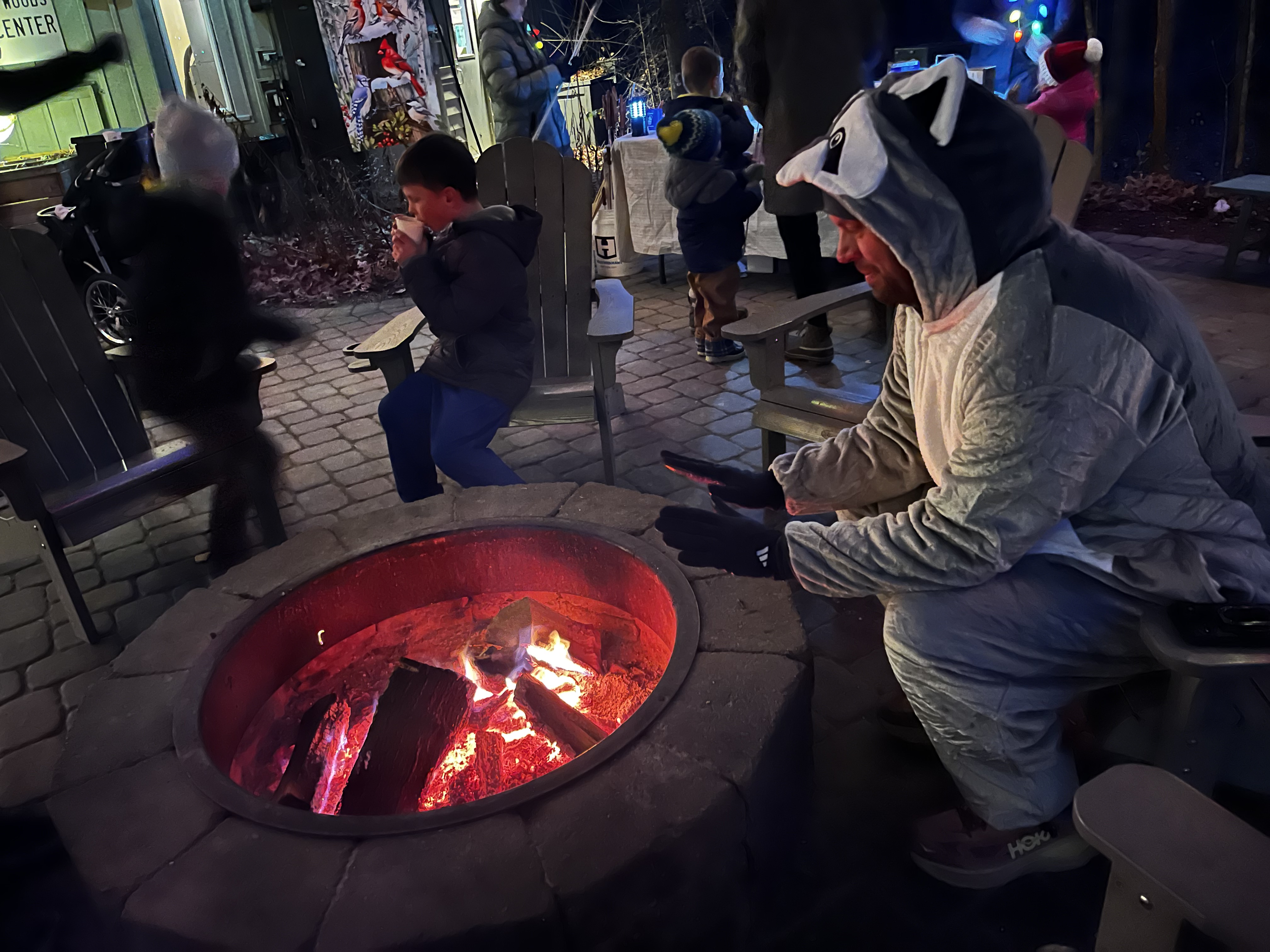 The larger-than-life raccoon made his first appearance at the kickoff for the winter hike series. He was bold enough, or relaxed enough, to settle into the comfort of the sloped back, wide seat, and broad armrests of an Adirondack chair next to the campfire.