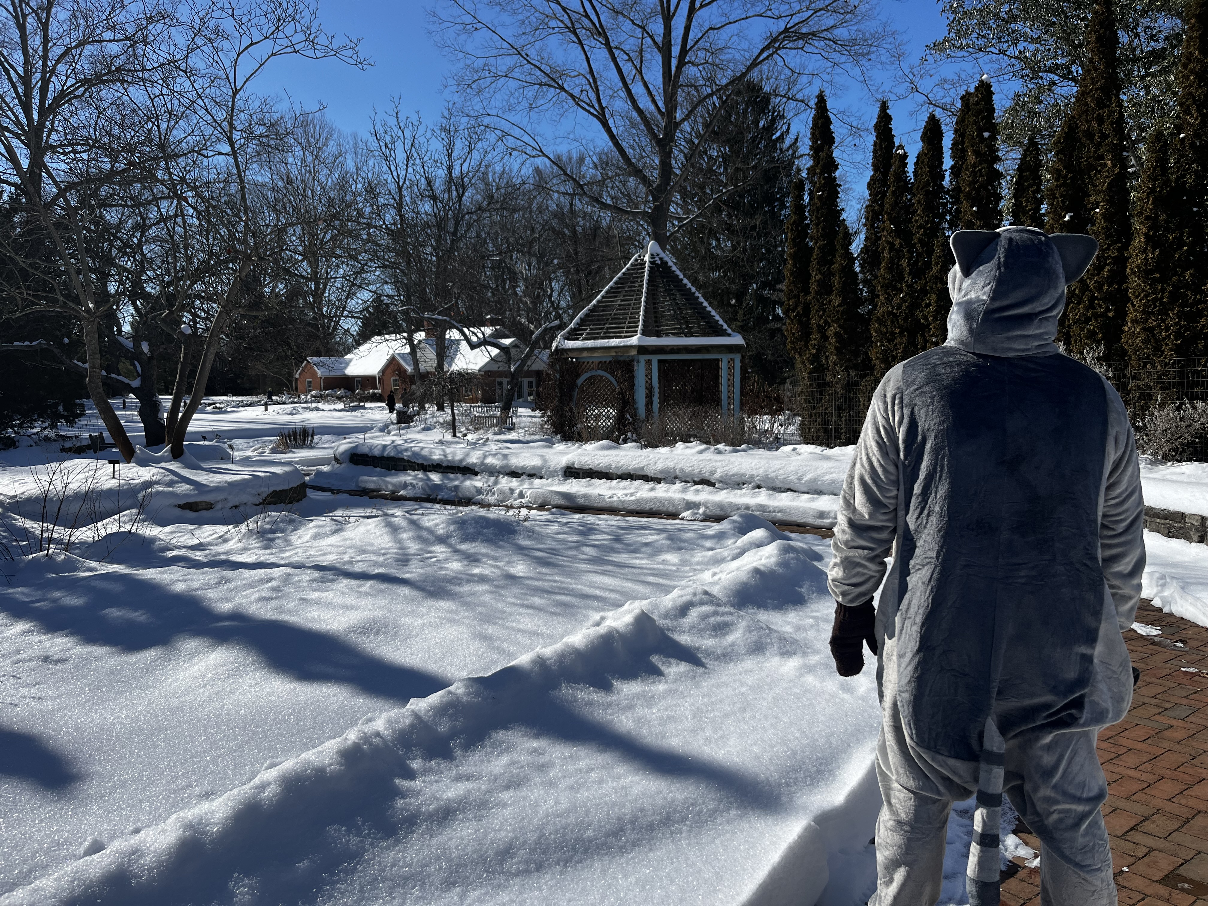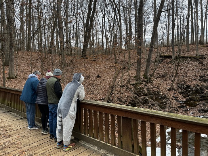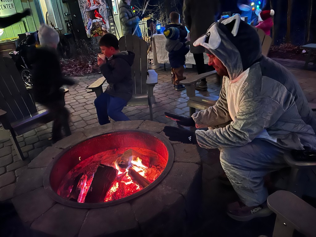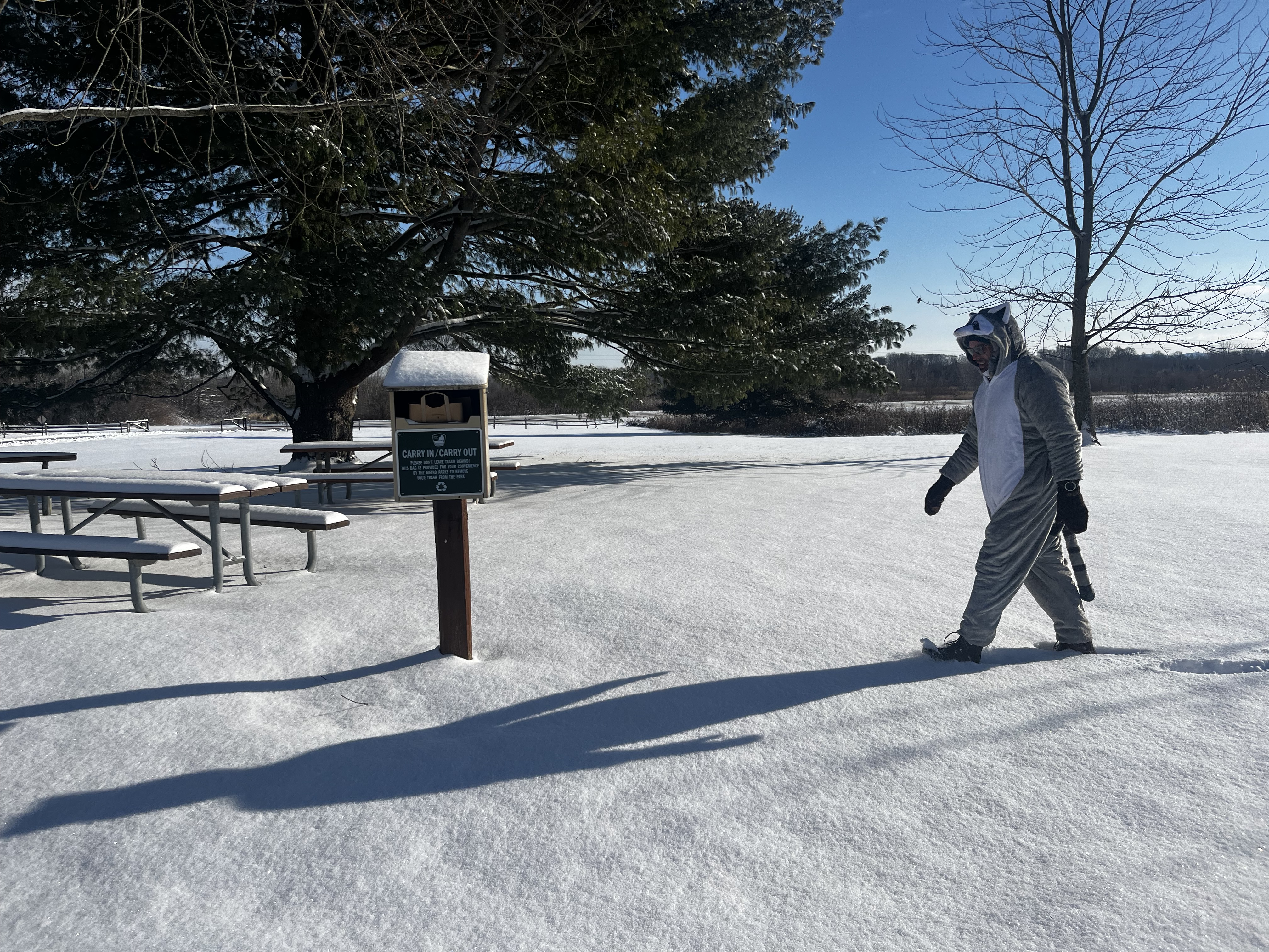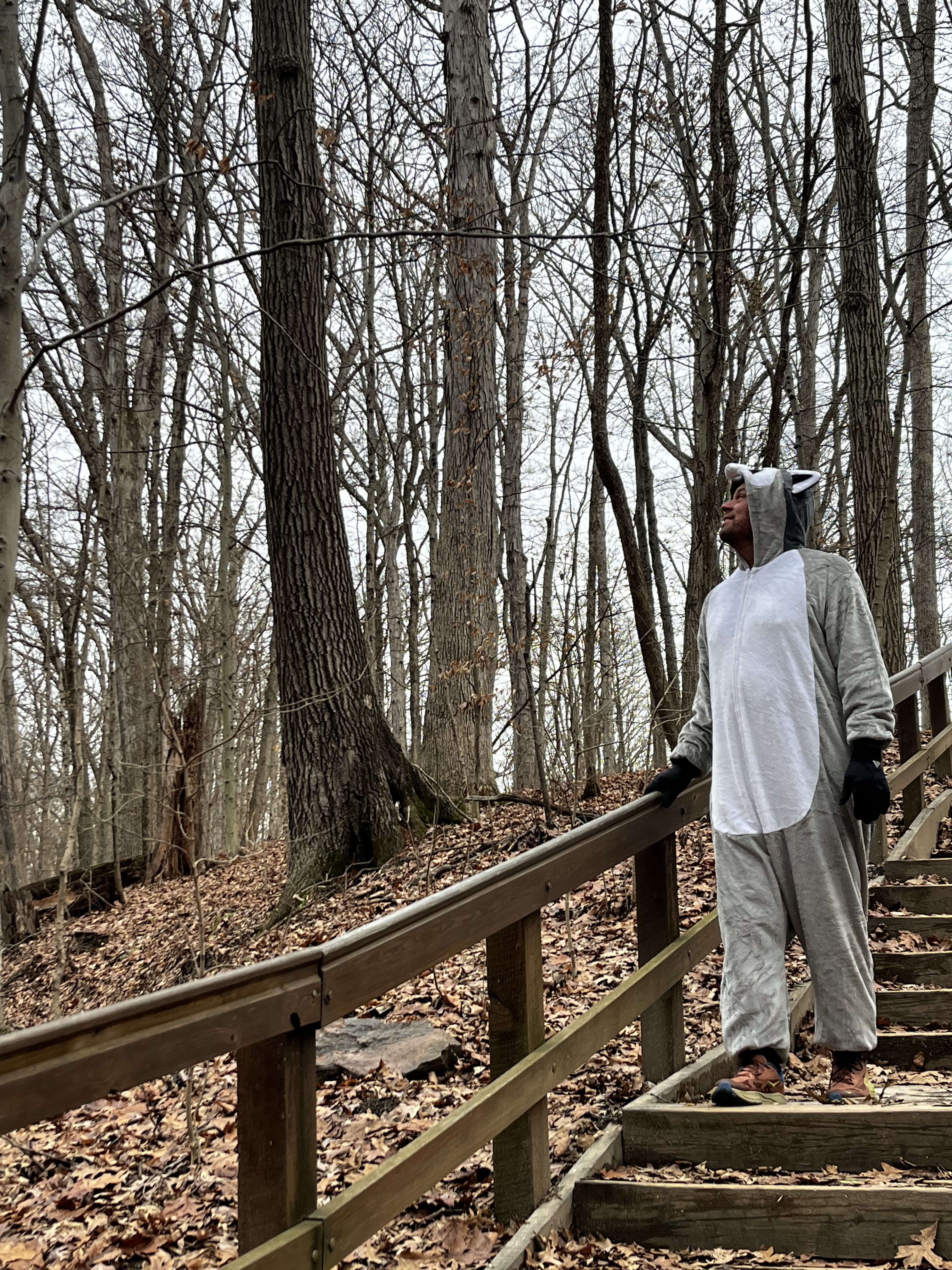 Maybe it’s because we’re safely within the Columbus and Franklin County Metro Parks – I don’t let my husband take me out to lunch or grocery shopping in his adult-sized onesie – but we’ve never encountered hostility or rudeness when he’s in costume. There was one incident that involved a playful tug of the raccoon’s tail, but it was all in good fun.