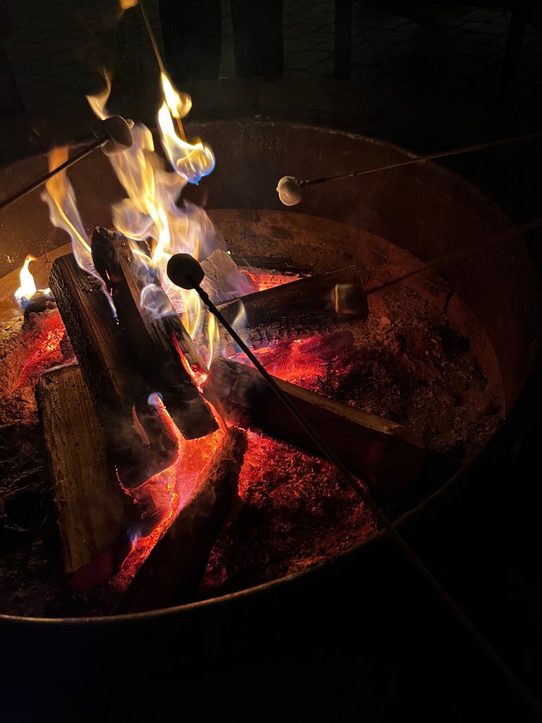 It was, perhaps, the best seat in the house, well positioned for roasting marshmallows destined for s’mores. He was counting on having at least three or four of the sweet treats, before the night was over. He considered digging through the trash for castaways later that night, once the park was cleared of visitors.