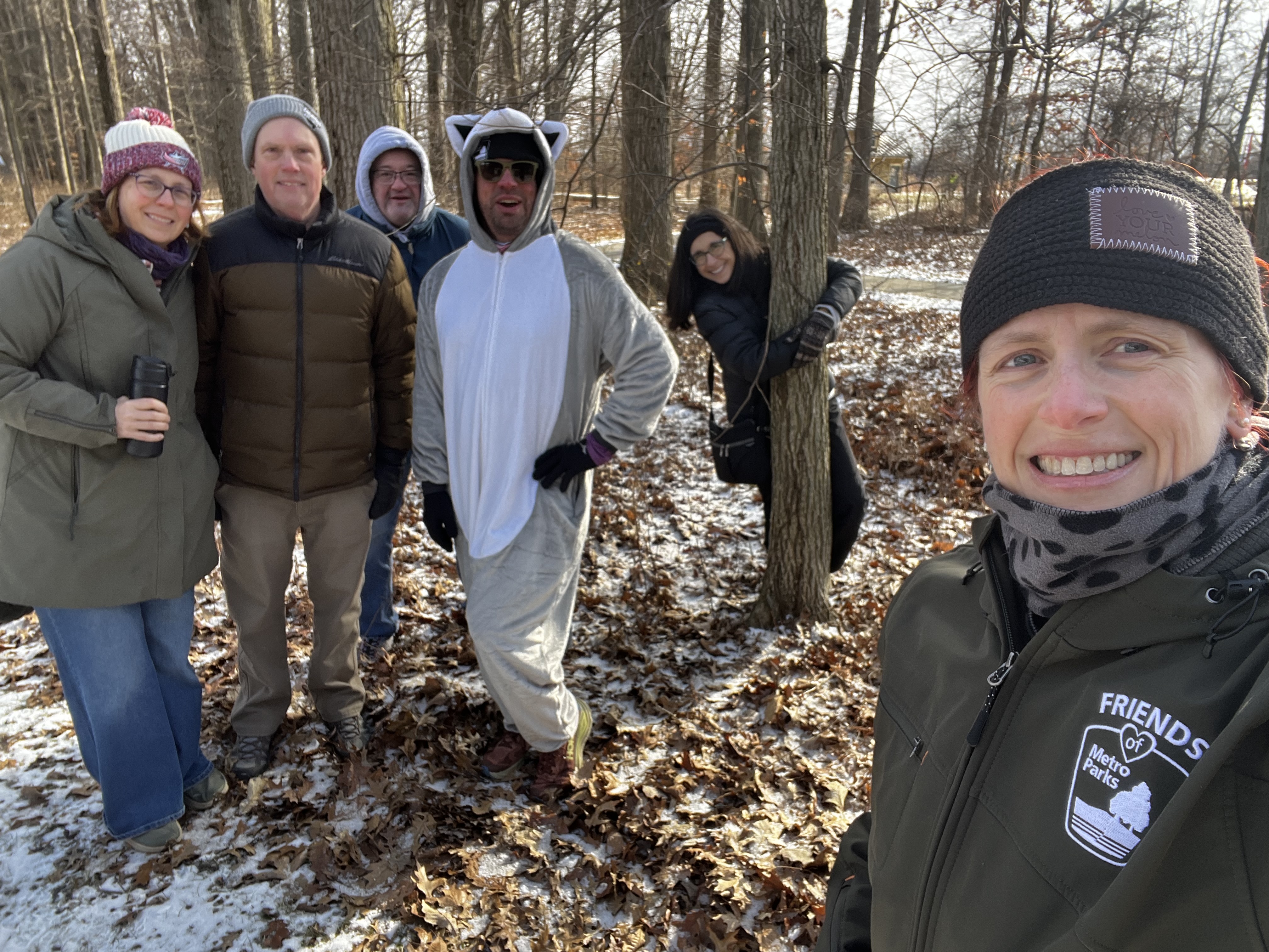 This raccoon is playful and well-liked by the community. “I remember you from last week’s hike!” and “I saw you at Blacklick, didn’t I?” and “You were at all the hikes last year!” are set on repeat. Our hiking friends are accustomed to his antics and the attention they elicit. It was a snow-covered world in Central Ohio this year, so there was no shortage of shenanigans going on.