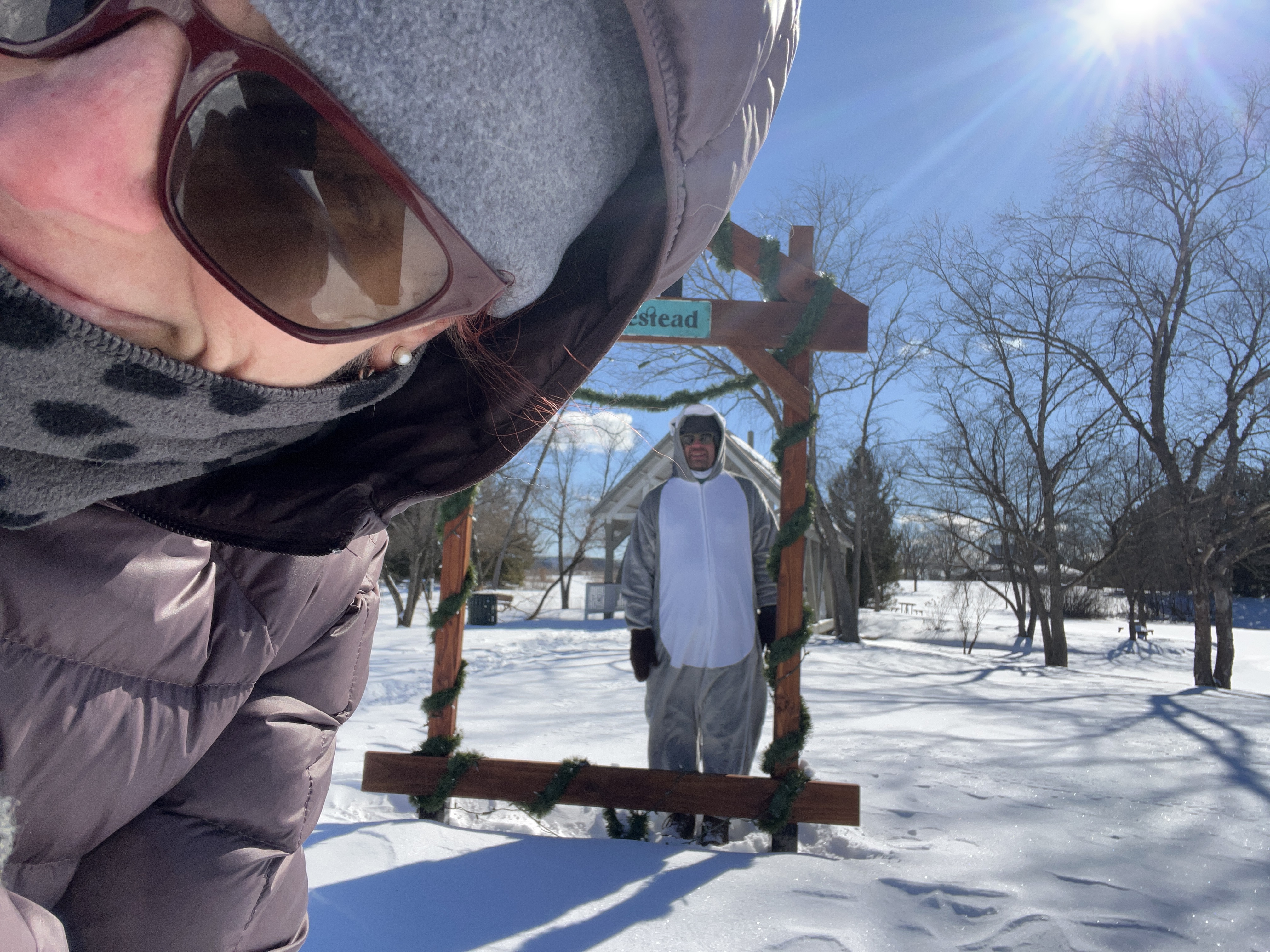 Hiking through the parks with a costumed character on my arm helps me see the parks through fresh eyes. The photographer and storyteller in me kicks in, so I’m planning my blog post even as we’re climbing to the ridge at the top of a steep hill, trudging through a foot of snow, or looking at our reflections in a pond.