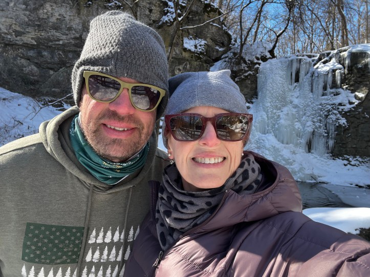 At the end of a long day of hiking at multiple parks, when he climbed his way out of the trash panda suit my husband emerged, ready for the next adventure. On the way home from an official hike we stopped at Hayden Run Falls. The ice and snow were even more stunning because the sun was shining. Soon we’ll be back to the Metro Parks for spring and summer adventures. For now, we bundle up and get out there! That Trash Panda comes along with us, whether Craig is in costume or not.
