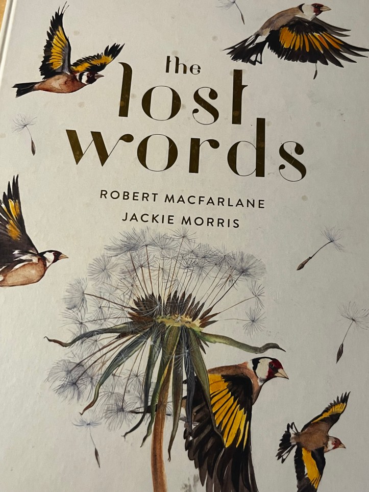 Scanning through the illustrated volumes, meant for the kiddos, my heart broke a little bit. At about 4th grade eye level, just inside the door, I found a book called Lost Words, by author Robert Macfarlane and author/artist Jackie Morris. It’s a beautiful collection of writing – considered ‘spells’ rather than poems because they are meant to be spoken or sung. Illustrations help readers rediscover the magic of the natural world.
