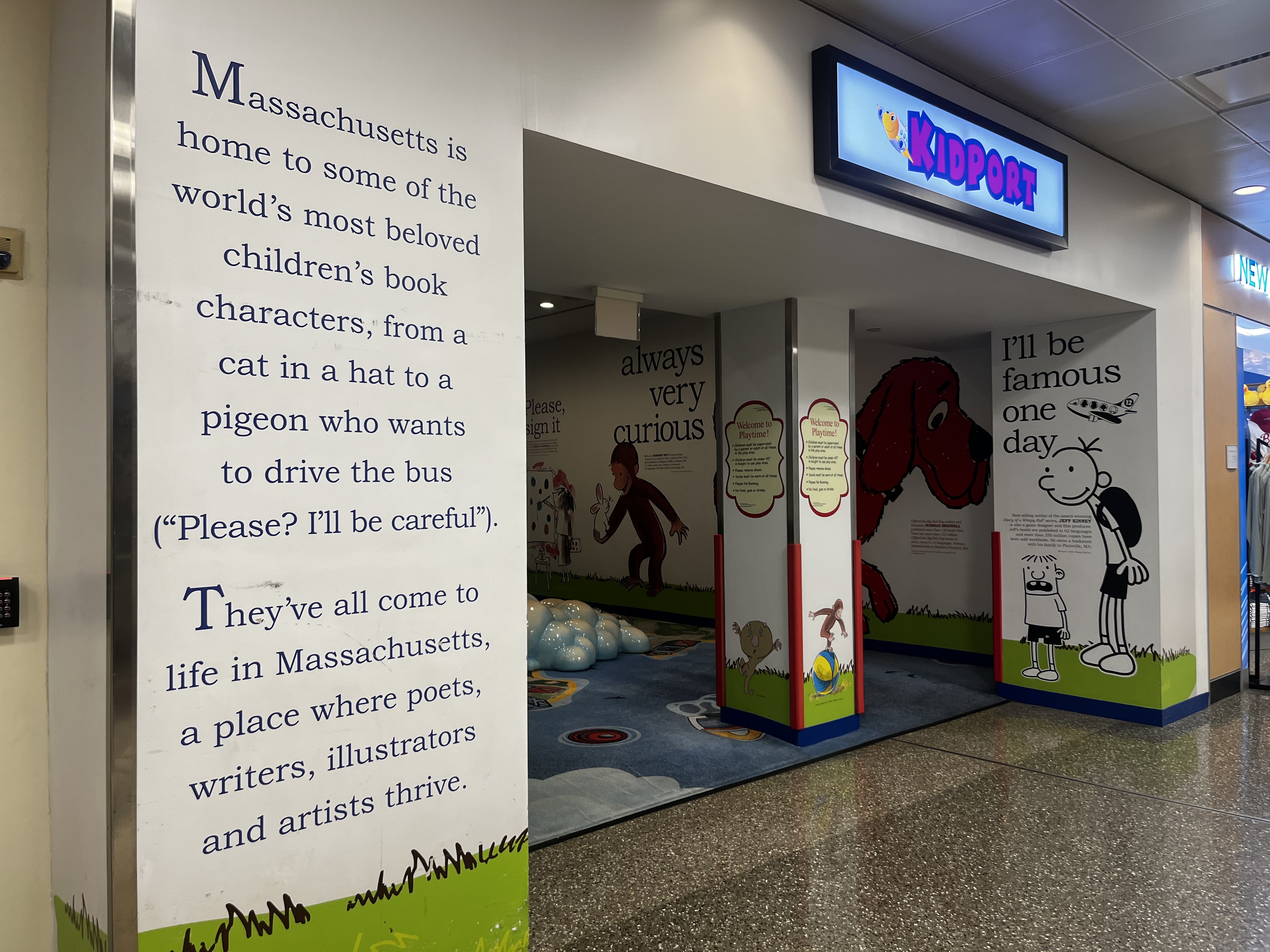I’m a little old for Diary of a Wimpy Kid but now I’m inspired to return to these stories. All these books, and more, are featured in a fun, colorful play area of the airport. I can’t think of a better way to provide a distraction and inspire wonder.